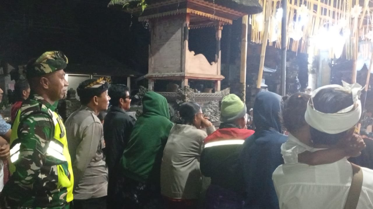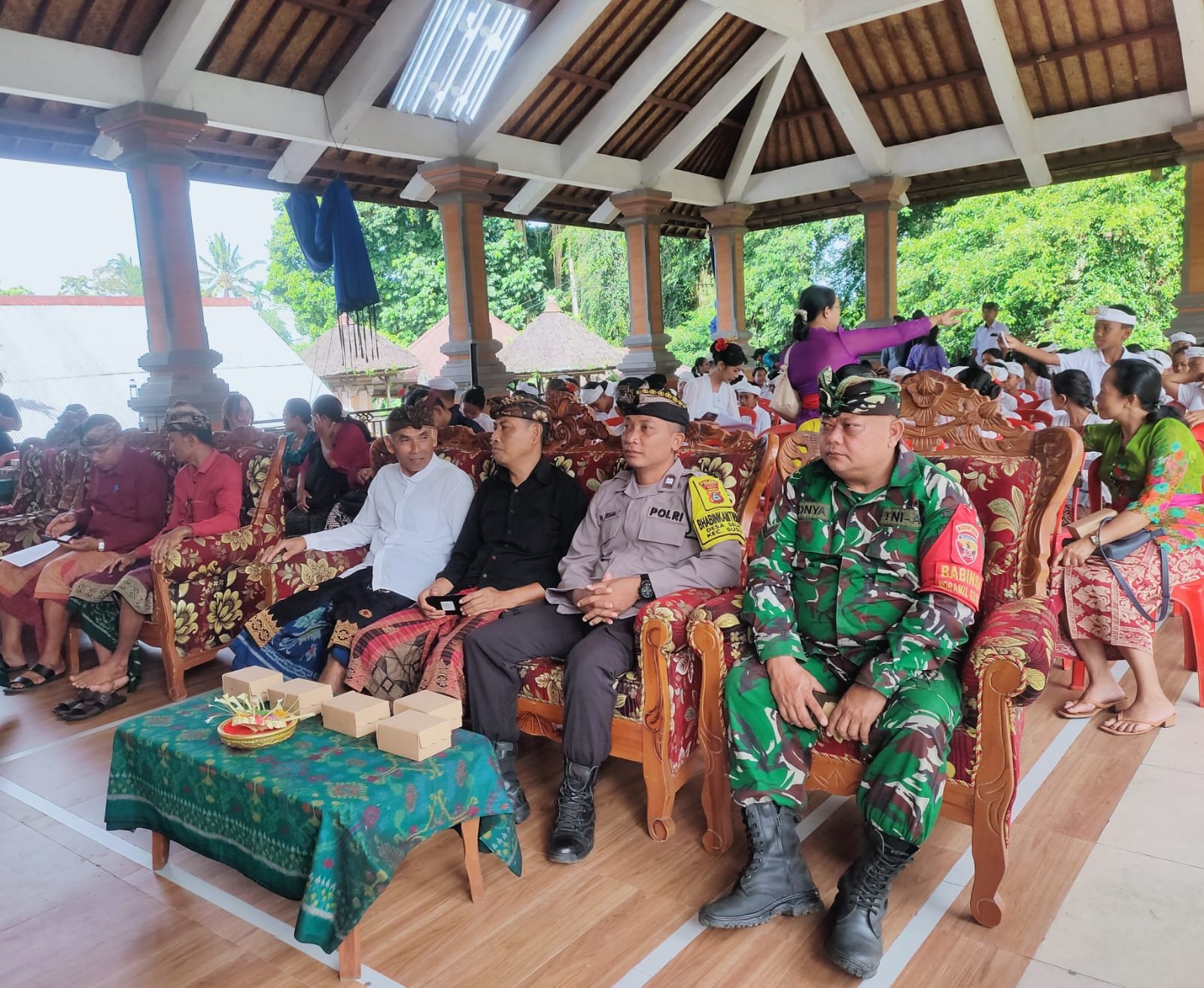 Bangli – Untuk menciptakan rasa aman dan nyaman bagi masyarakat yang merayakan kegiatan adat, Babinsa Desa Undisan dari Koramil 1626-03/Tembuku,