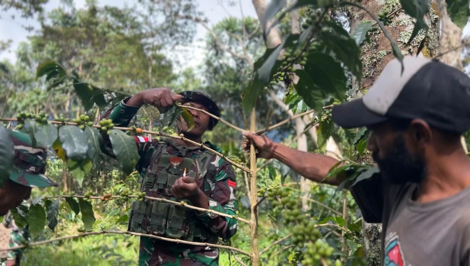 Oksibil, Pegunungan Bintang — Satgas Swasembada Yonif 751/Vira Jaya Sakti (VJS) menggelar kegiatan pembinaan teritorial berupa edukasi budidaya kopi kepada