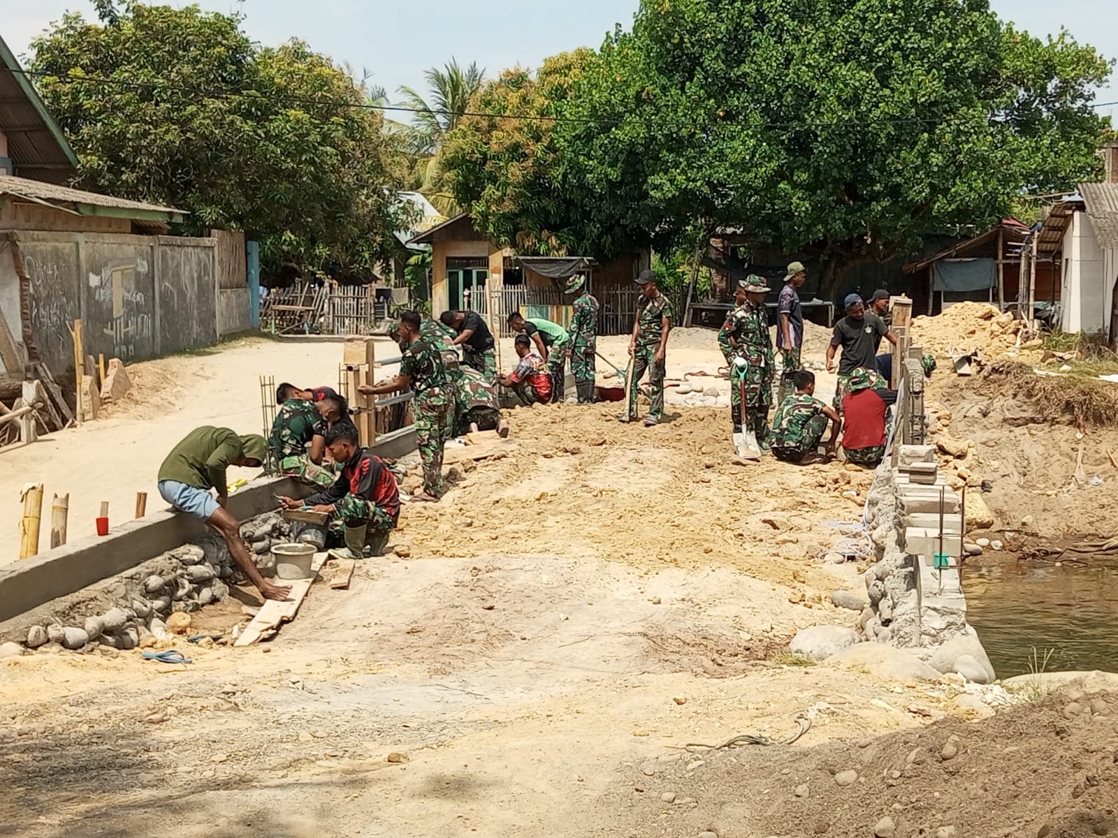 Aceh Utara – Proses revitalisasi Jembatan Aramco semakin tampak jelas seiring dengan percepatan pembangunan yang dilaksanakan oleh anggota TNI di