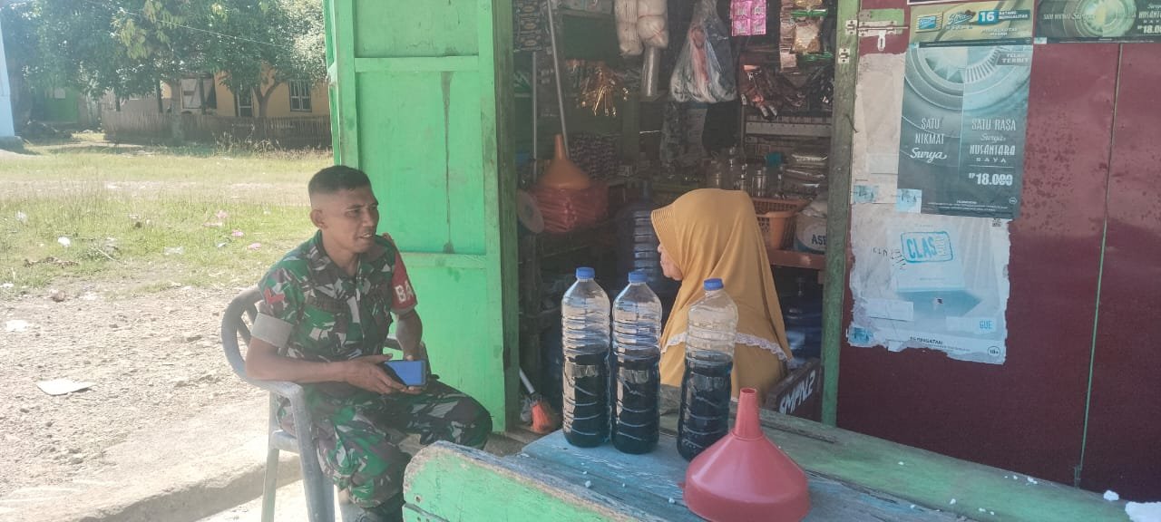 Halmahera Tengah – Babinsa, Kopda Zulsubuh, melaksanakan kegiatan komunikasi sosial (komsos) bersama Ibu Tia dengan fokus pada pentingnya menjaga kebersihan