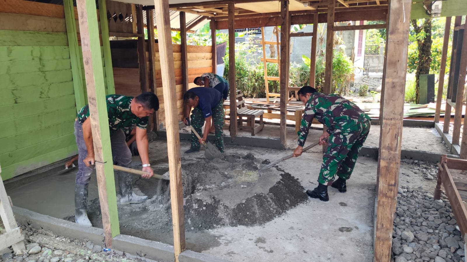 Nagan Raya – Pembangunan Rumah Tidak Layak Huni (RTLH) dalam program TMMD Wiltas Ke-127 Kodim 0116/Nagan Raya kini memasuki tahap