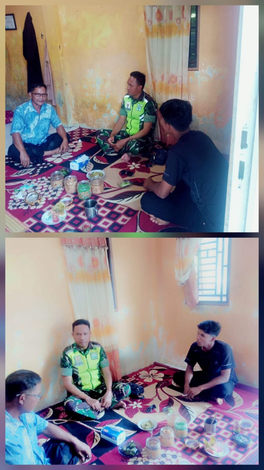 ACEH BARAT, – Babinsa Koramil 02/Woyla Kodim 0105/Abar Sertu M.Dahlan Melaksanakan Anjang sana pada saat suasana Lebaran hari ke 2