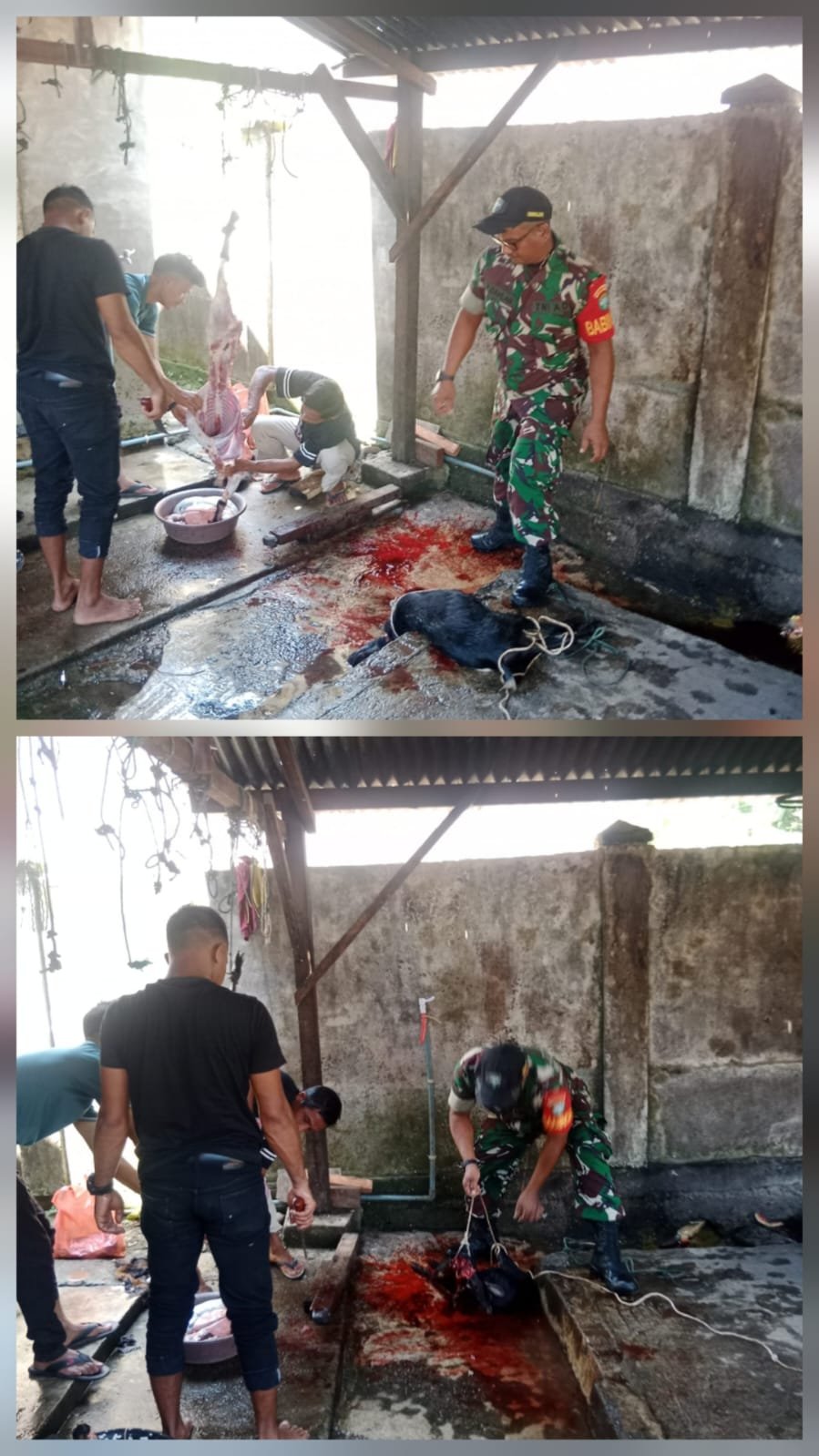 Babinsa Koramil 02/Woyla, Dampingi Penyembelihan Hewan di RPH Desa Wilayah Binaan