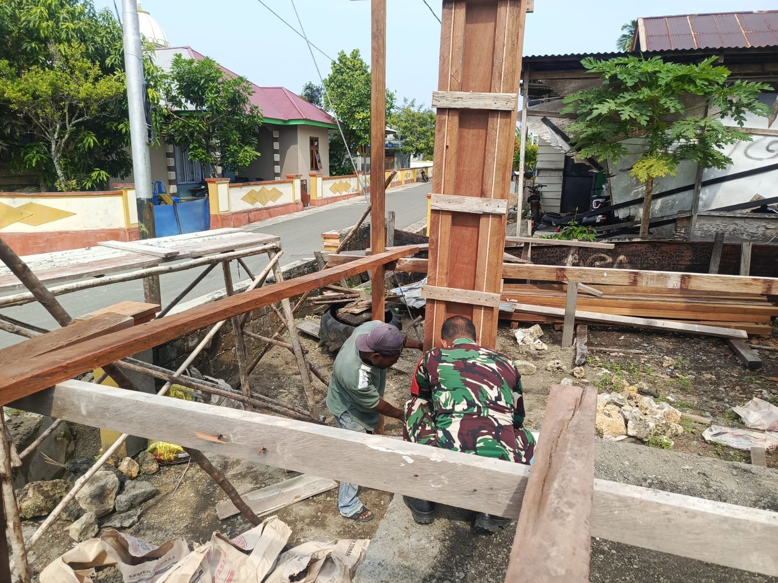 Halmahera Tengah – Babinsa Kopda Fery Kakisina melaksanakan kegiatan karya bakti Rumah Tidak Layak Huni (RTLH) dengan melakukan pengecoran tiang