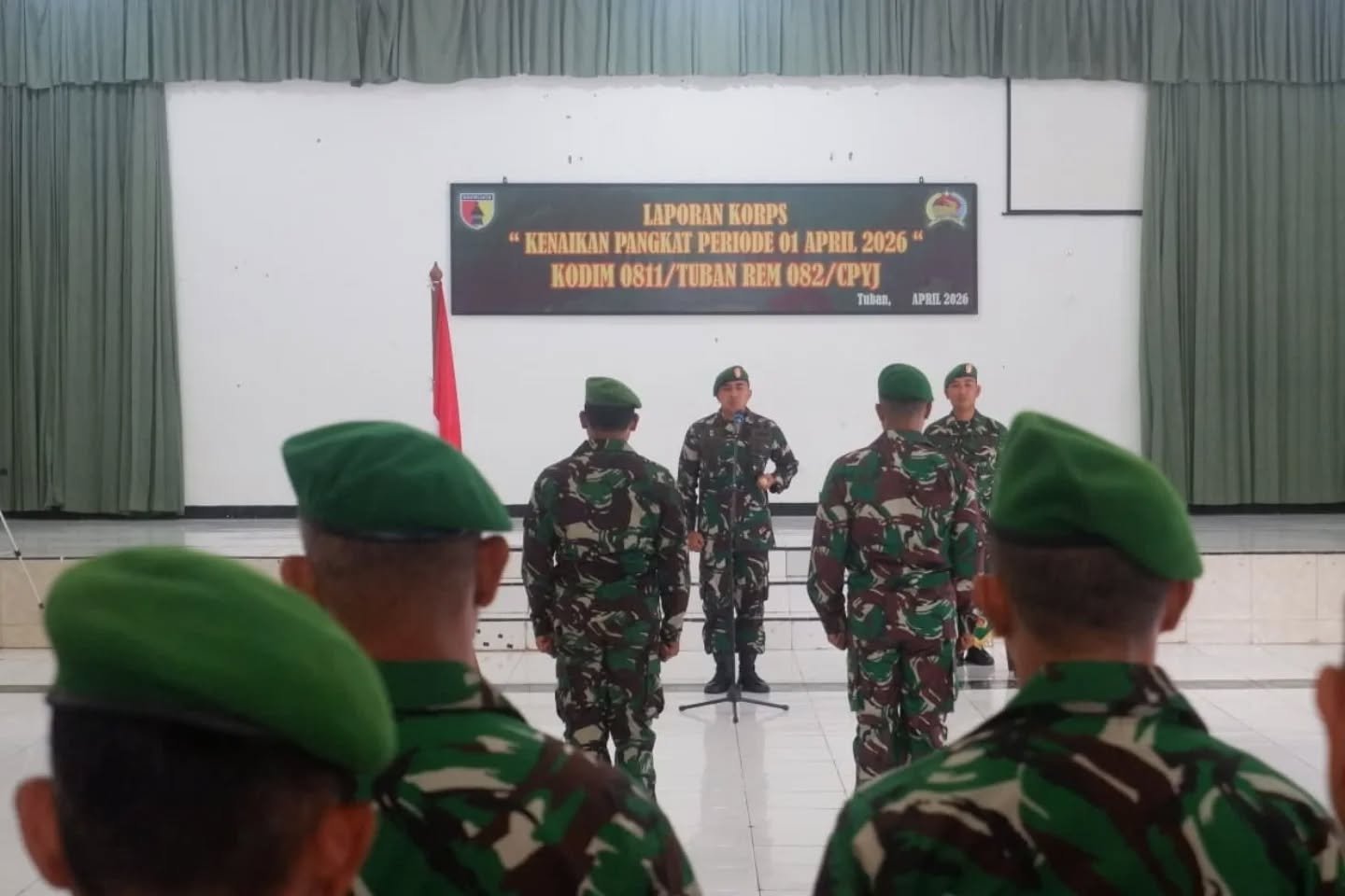 TUBAN – Upacara Korps Raport Kenaikan Pangkat untuk personel Perwira, Bintara, dan Tamtama periode 1 April 2026 dipimpin oleh Komandan