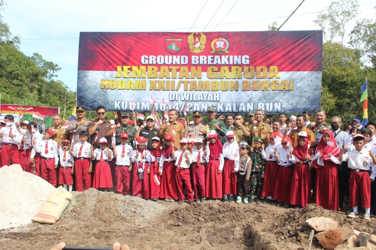 Sukamara – Komandan Kodim 1014/Pbn, Letkol Inf Makin, menghadiri acara ground breaking untuk pembangunan Jembatan Garuda yang berlokasi di Desa