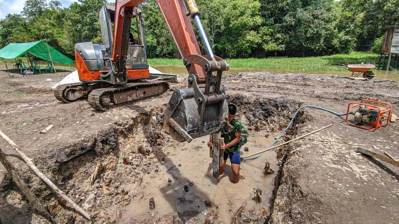 Nagan Raya – Personel TNI terus mempercepat pembangunan Jembatan Aramco yang berlokasi di Desa Kuala Tripa, Kecamatan Tripa Makmur, Kabupaten