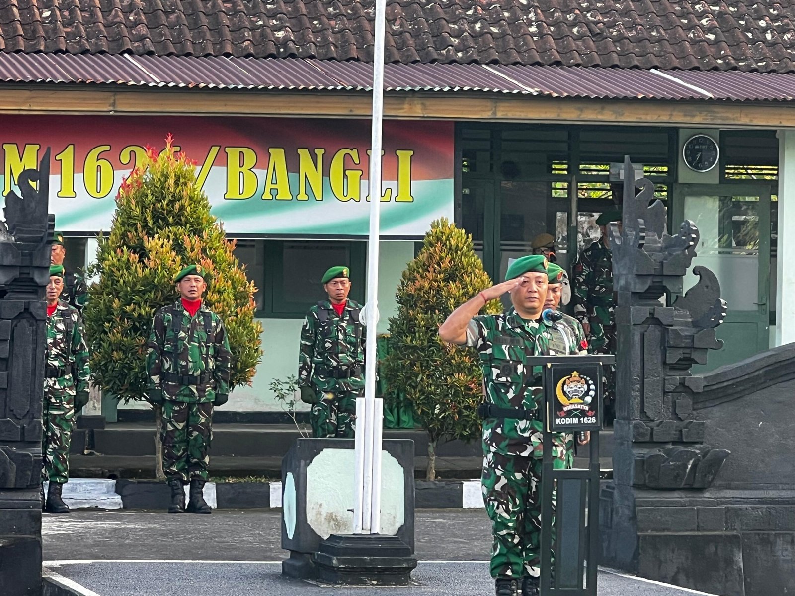 Bangli – Kodim 1626/Bangli menggelar Upacara Bendera dalam rangka memperingati Hari Kemerdekaan Republik Indonesia pada Senin (20/4/26) di Lapangan Makodim