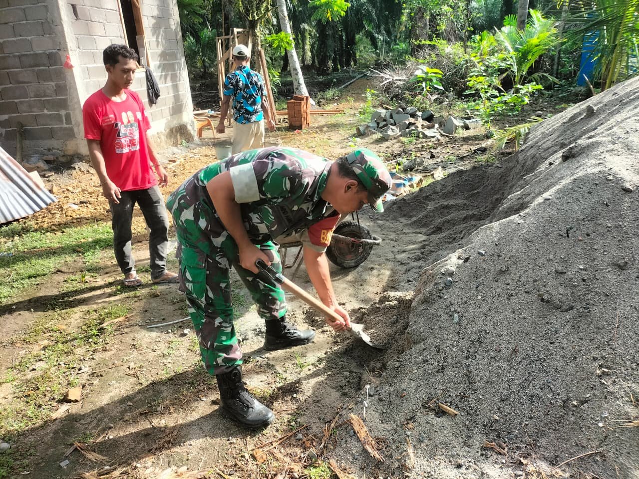 ACEH JAYA – Babinsa Koramil 05/Panga Kodim 0114/Aceh Jaya, Serda M. Ambri, melaksanakan kegiatan karya bakti dengan membantu warga mengangkat