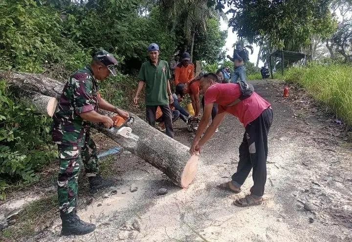 Babinsa Kodim 0112/Sabang Jajaran Korem 012/TU Gerak Cepat Buka Akses Jalan Tertutup
