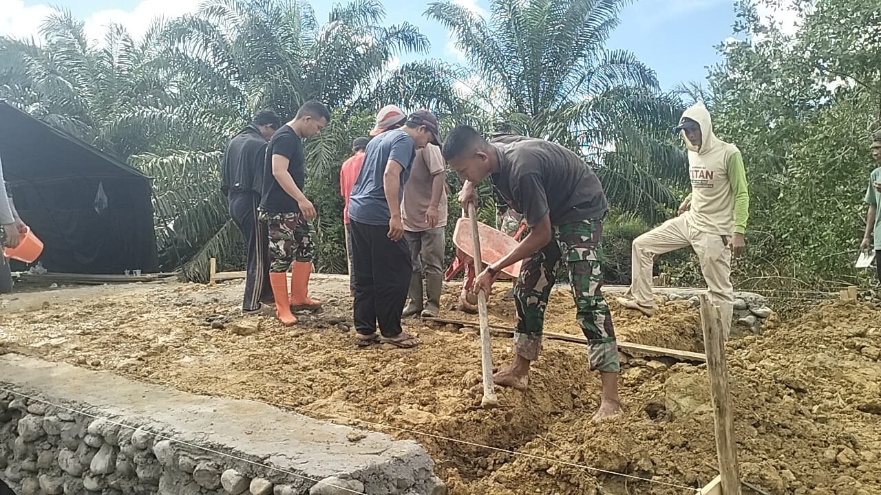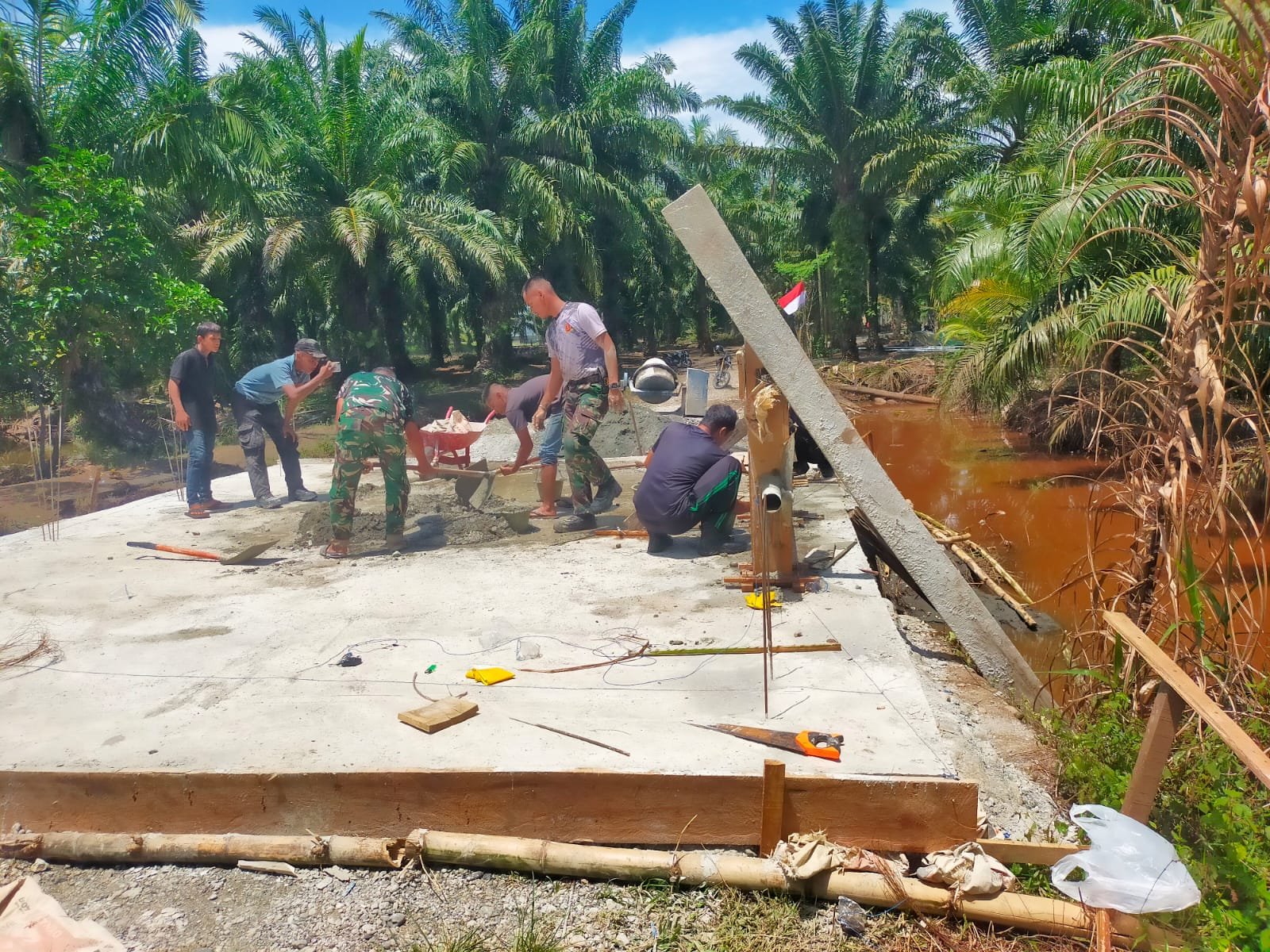Nagan Raya – Personel Kodim 0116/Nagan Raya, lelaksanakan pengerjaan dan pembangunan jembatan di Desa Kuala Tripa, Tripa Makmur, Kabupaten Nagan