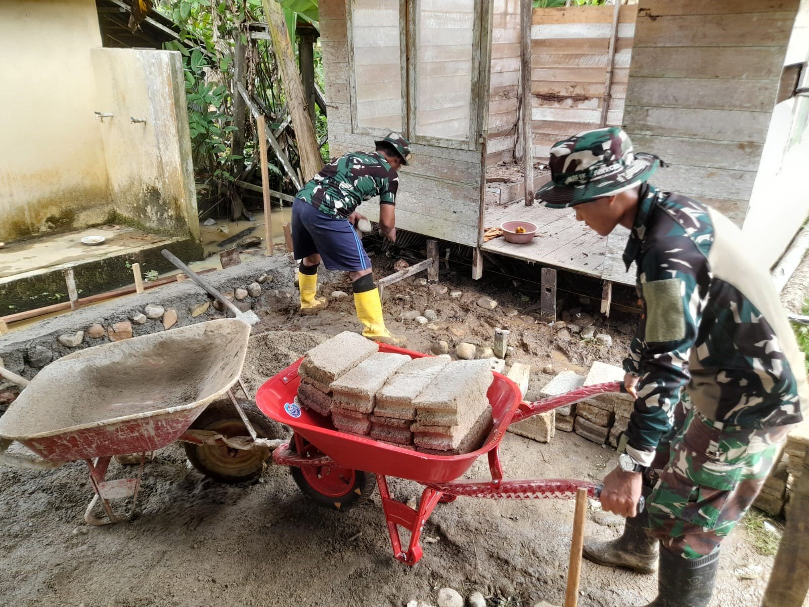 Dalam rangka memfasilitasi kebutuhan sanitasi yang layak, anggota Satgas TMMD ke-128 dari Kodim 1430/Konawe Utara, berkolaborasi dengan masyarakat untuk membangun