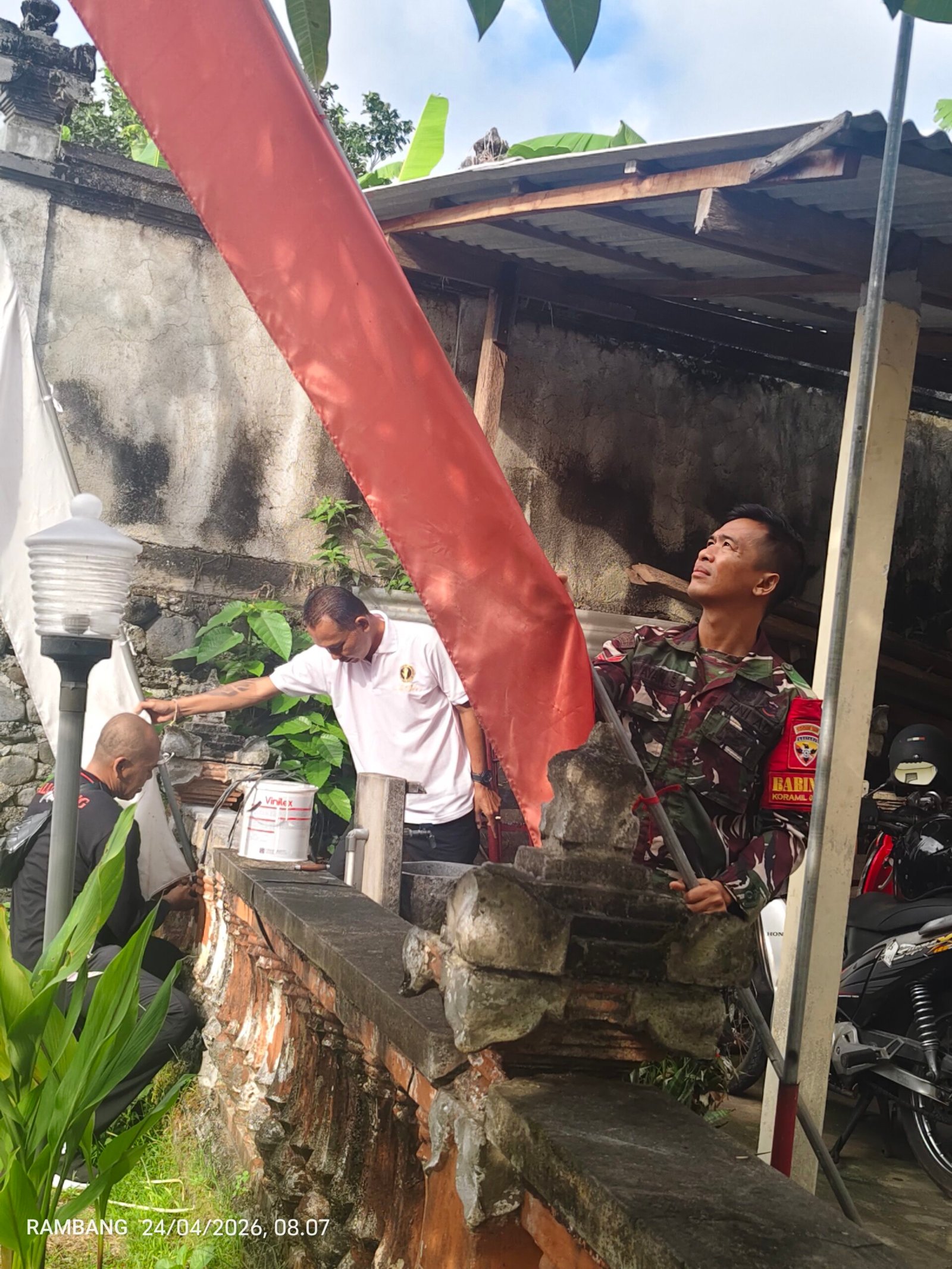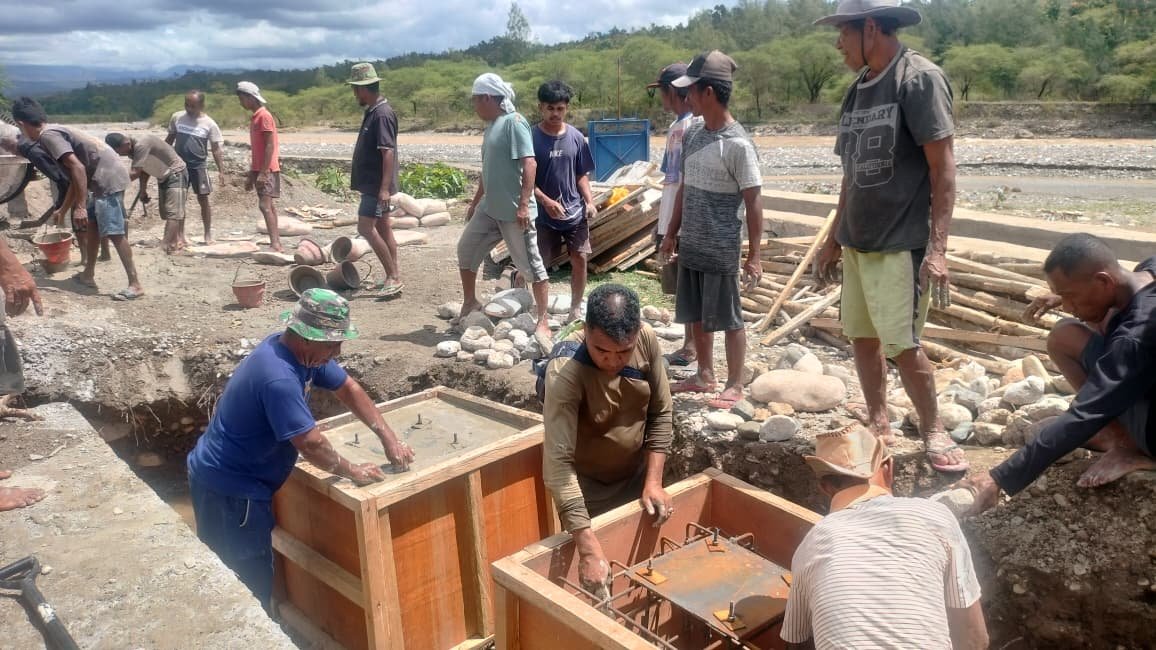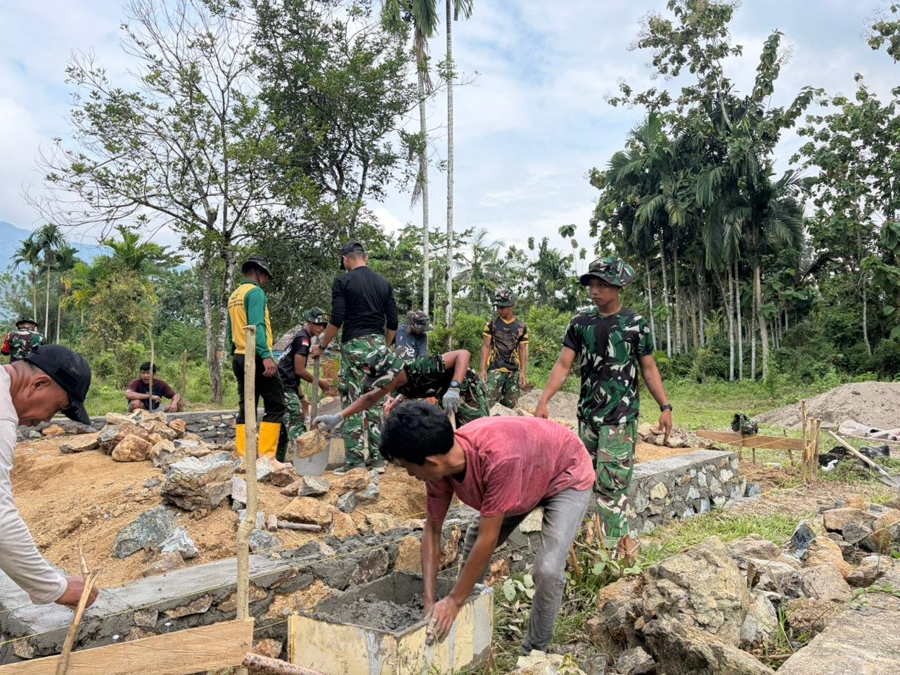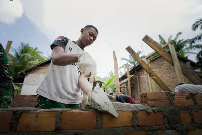 Semangat kolaborasi antara masyarakat dan TNI terlihat jelas dalam pembangunan Rumah Tidak Layak Huni (RTLH) pada program TMMD ke-128 Kodim