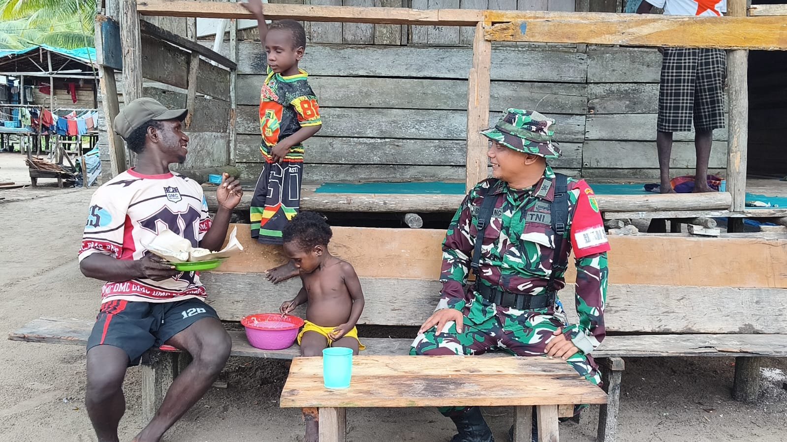 Manokwari, Papua Barat — Kehadiran personel Satgas TMMD ke-128 Kodim 1801/Manokwari dalam ibadah Minggu menunjukkan kedekatan bersama warga Kampung Tanah