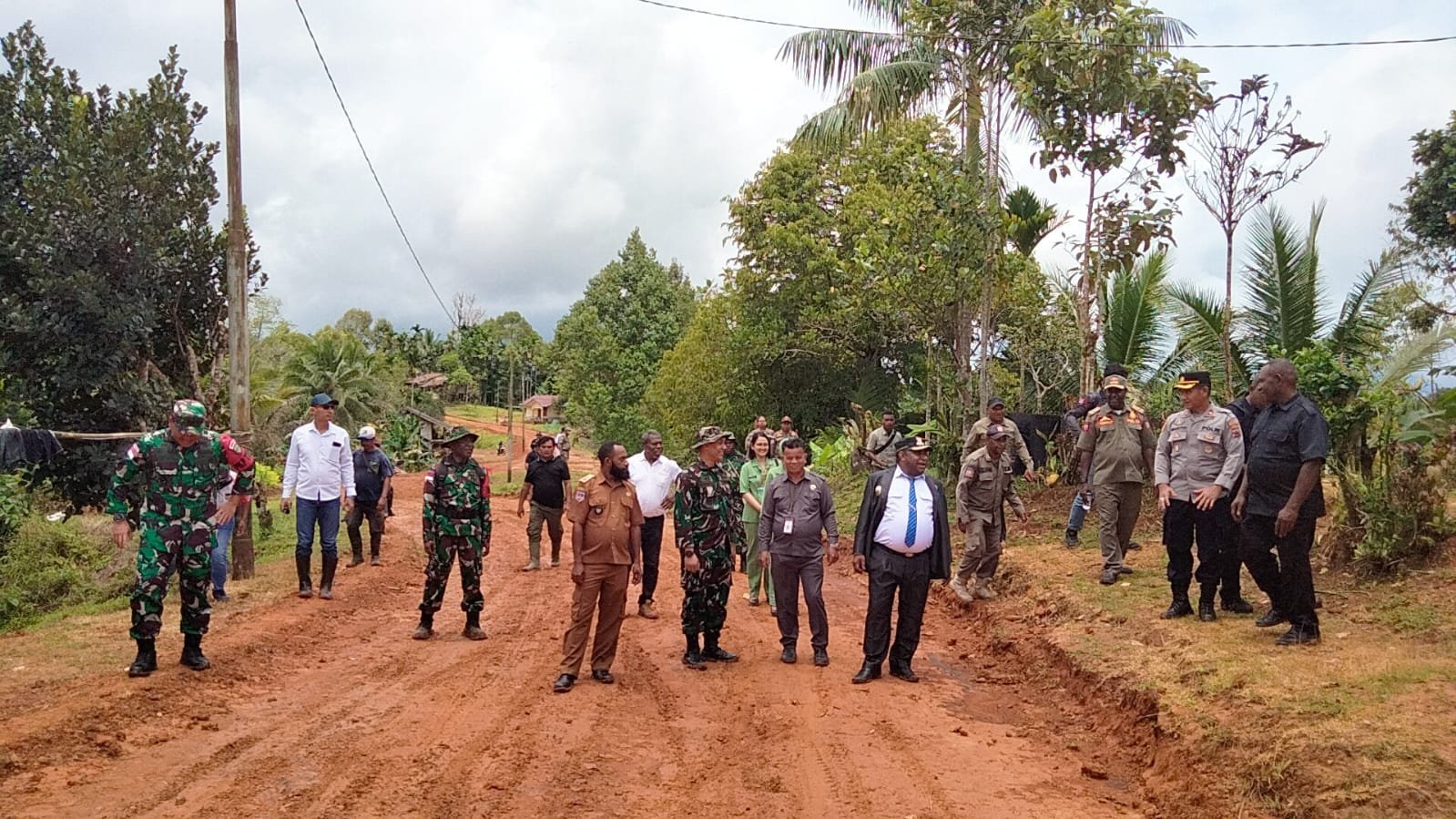Rombongan meninjau sejumlah titik sasaran fisik yang akan menjadi fokus pelaksanaan TMMD ke-126, antara lain pembangunan dan peningkatan infrastruktur jalan kampung, sarana air bersih, serta fasilitas umum lainnya yang menjadi kebutuhan dasar masyarakat Waropko.