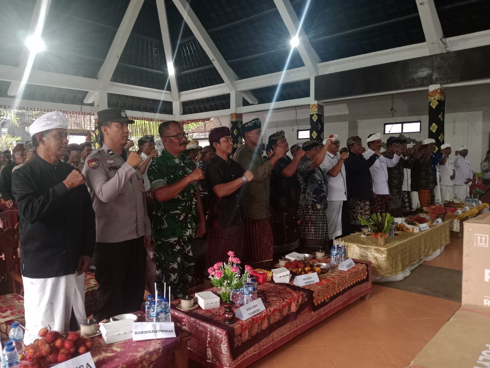 Bangli – Bertempat di Wantilan Pura Dalem Tarukan, Banjar Adat Pulesari, Desa Persiapan Pulesari, Kecamatan Tembuku, Kabupaten Bangli Babinsa Desa Peninjoan Koramil 03/Tembuku jajaran Kodim 1626/Bangli Sertu I Made Suarnika bersama Bhabinkamtibmas menghadiri kegiatan RAT LPD Banjar Adat Pulesari tahun buku 2024. Kamis (16/01/25)
