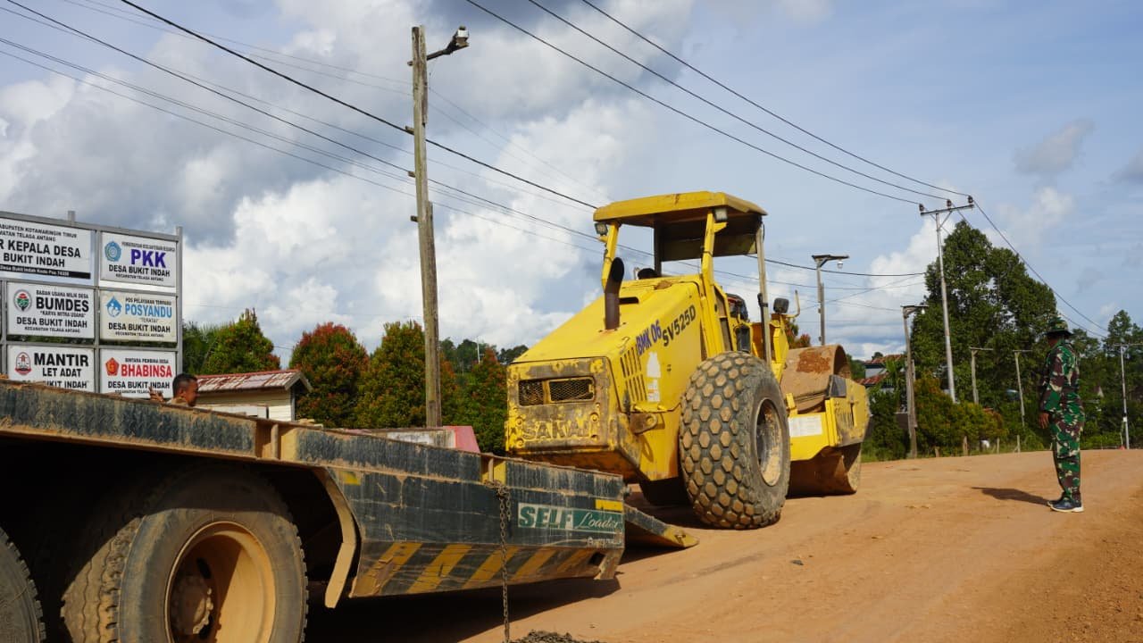 Kotawaringin Timur – Satgas TMMD Reguler ke-127 Kodim 1015/Sampit terus berupaya meningkatkan infrastruktur desa, dengan fokus pada pengerasan jalan perkebunan yang kini telah berada di tahap akhir, pada Senin (09/03/2026). Untuk mempercepat proses tersebut, Satgas menghadirkan alat berat jenis Bomag, yang berfungsi dalam pemadatan jalan agar hasil akhir lebih optimal. Letkol Inf Dwi Candra Setyawan, Dansatgas TMMD Reguler ke-127, mengungkapkan bahwa keberadaan alat berat ini sangat penting, khususnya saat pengerjaan mencapai tahap final. Dia menambahkan bahwa penggunaan Bomag memungkinkan pemadatan jalan dilakukan secara lebih efisien, dibandingkan metode manual. Menurutnya, kehadiran alat berat ini juga berdampak positif bagi personel Satgas TMMD, karena dapat meringankan beban kerja dan memastikan bahwa semua target pembangunan dapat diselesaikan sesuai jadwal yang telah ditetapkan.