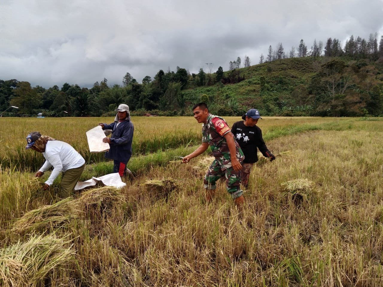 Kodim Poso, – Serma I. Christian, anggota Koramil 1307-02/Pamona Pusalemba, turut berpartisipasi dalam kegiatan panen padi yang diadakan di Desa Kelei, Kecamatan Pamona Timur, Kabupaten Poso. Kegiatan tersebut dilaksanakan di lahan seluas 25 Are milik Bapak Ipon, yang dikelola bersama dengan kelompok Tani Palawanga Padi Tailan. Minggu, (19/1/2025).