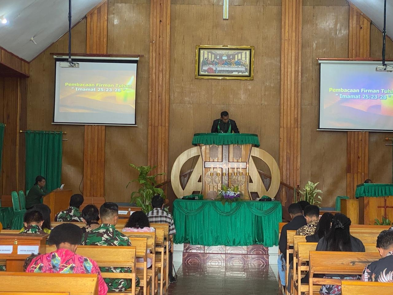 ANGGOTA KORAMIL 1705-04/MOANEMANI MELAKSANAKAN KEGIATAN IBADAH DI GEREJA GKI KOINONIA MOANEMANI