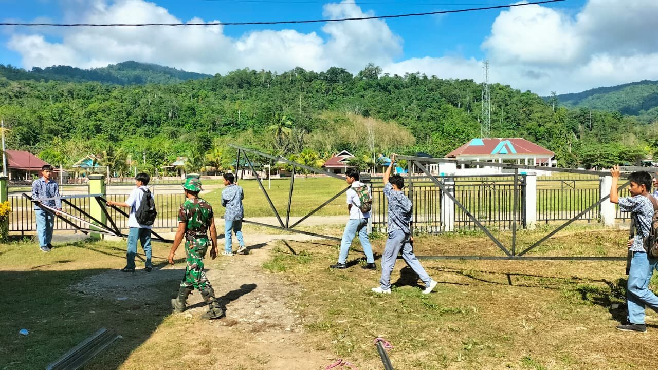 Salah satu anggota Satgas TMMD menyampaikan bahwa keterlibatan siswa dalam kegiatan ini merupakan bentuk pembelajaran nilai-nilai gotong royong dan tanggung jawab sosial.