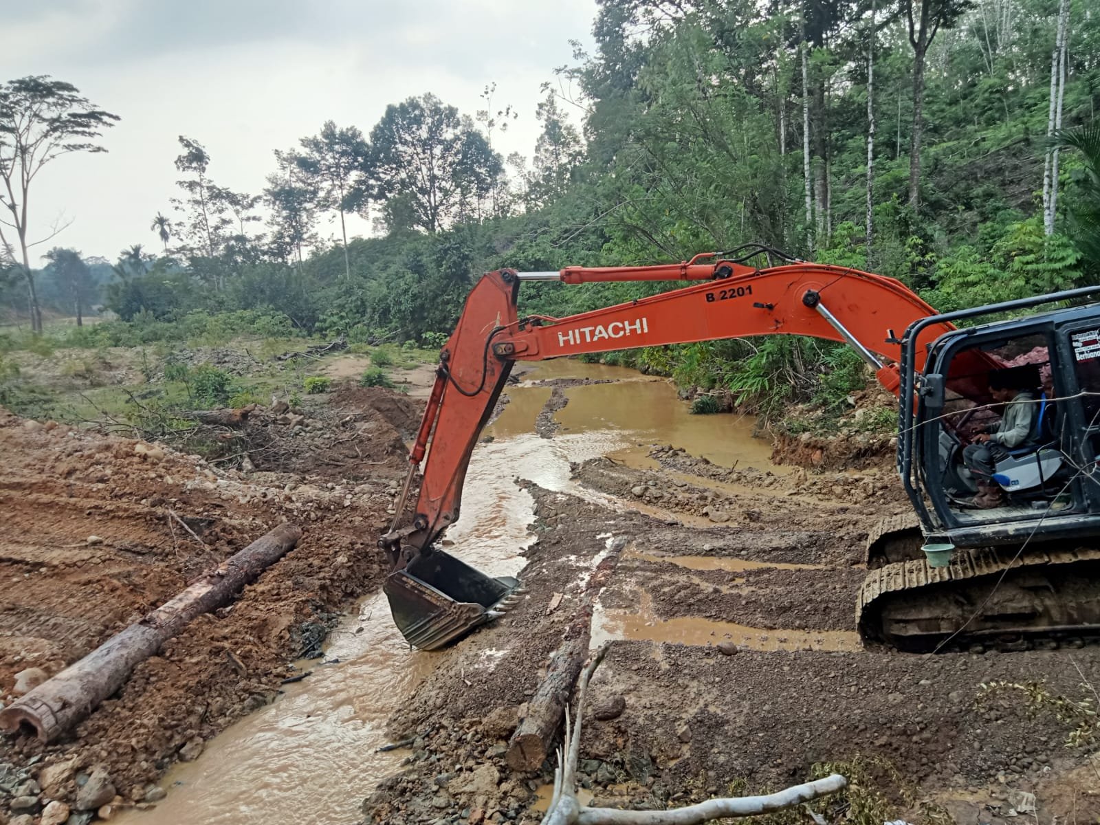 Aceh Barat – Di sudut Desa Pasi Aceh, suara cangkul dan palu terdengar bersahutan. Suara itu menjadi tanda bahwa pembangunan