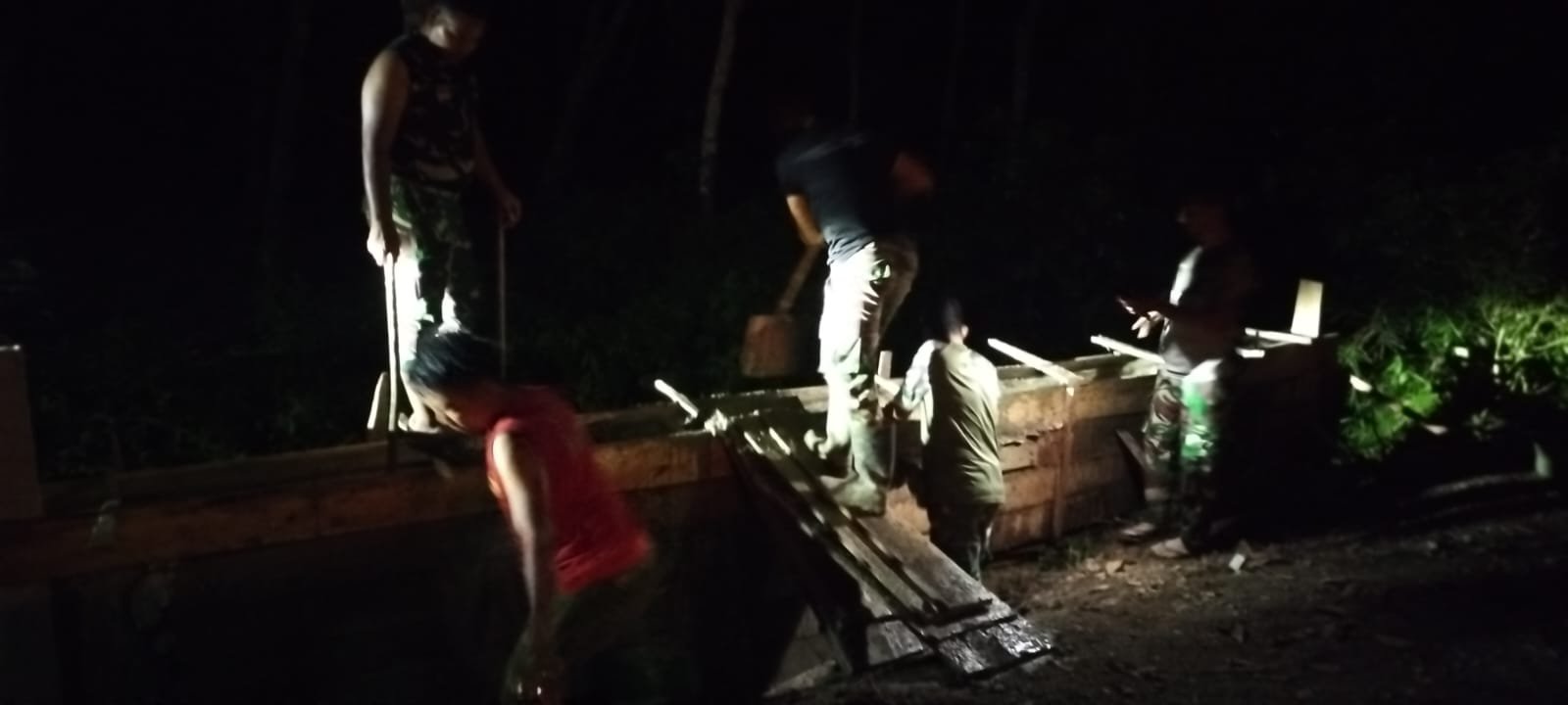 Aceh Barat – Ketika malam menyelimuti Desa Pasi Aceh, personel Satgas TMMD Reguler ke-127 Kodim 0105/Abar tetap berdiri tegak di