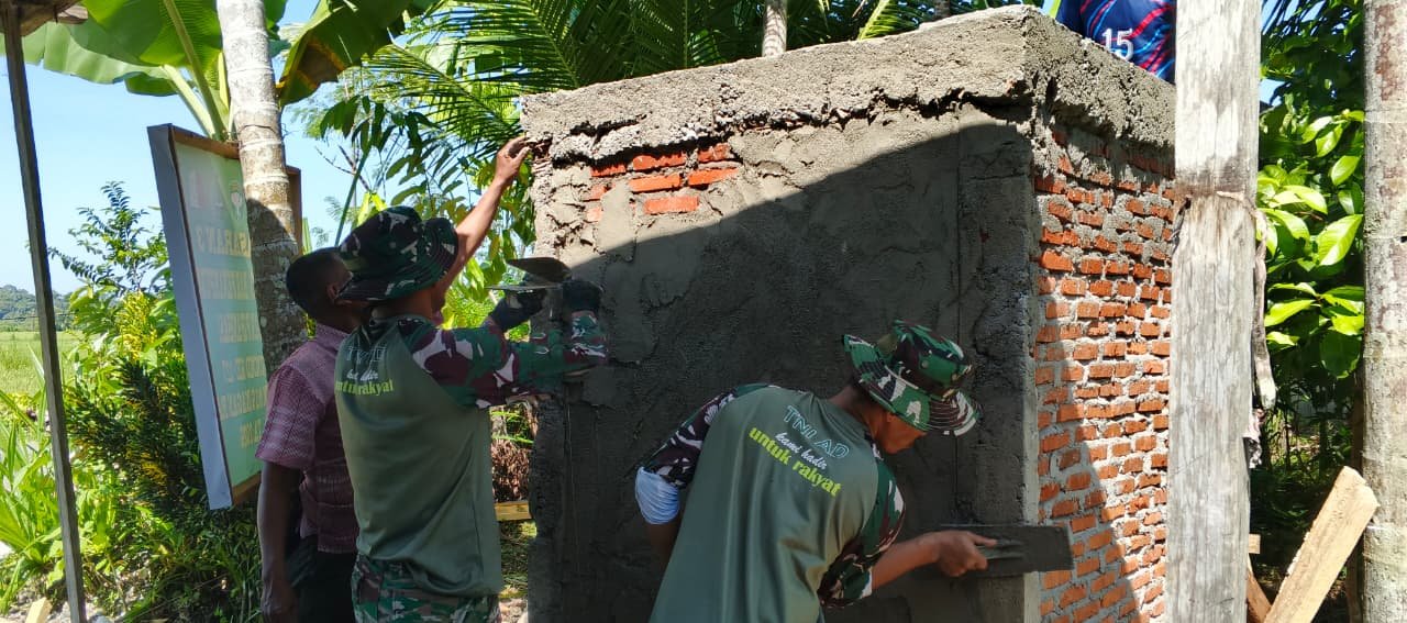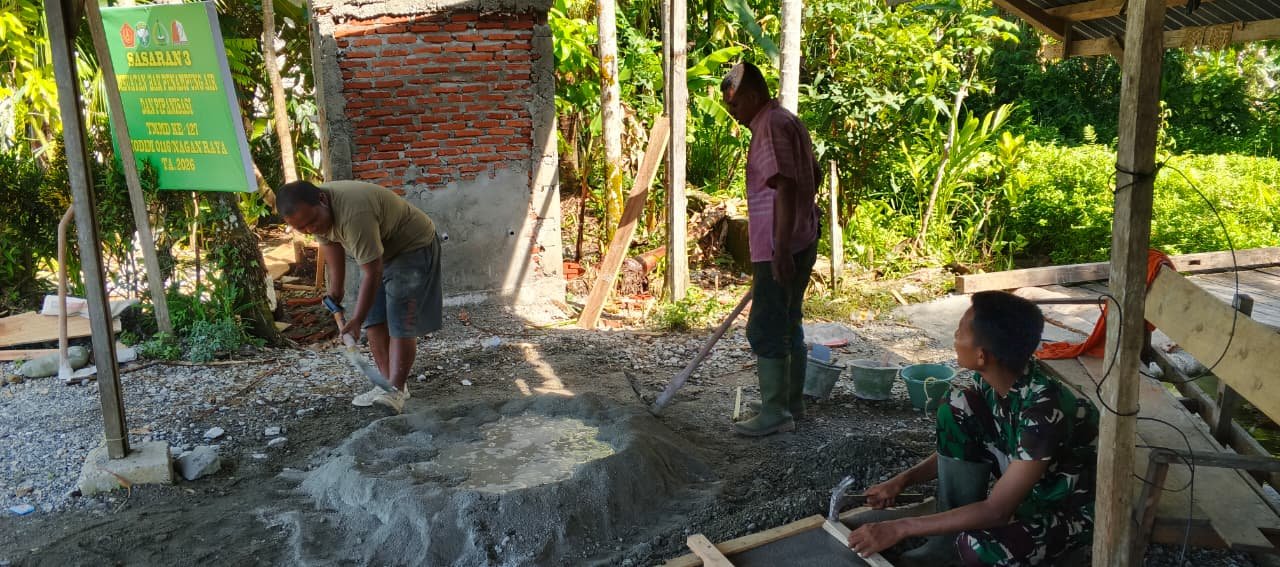 NAGAN RAYA — Satgas TMMD Ke-127 bersama Kodim 0116/Nagan Raya melaksanakan percepatan pembangunan fasilitas mandi cuci kakus (MCK) sebagai bagian