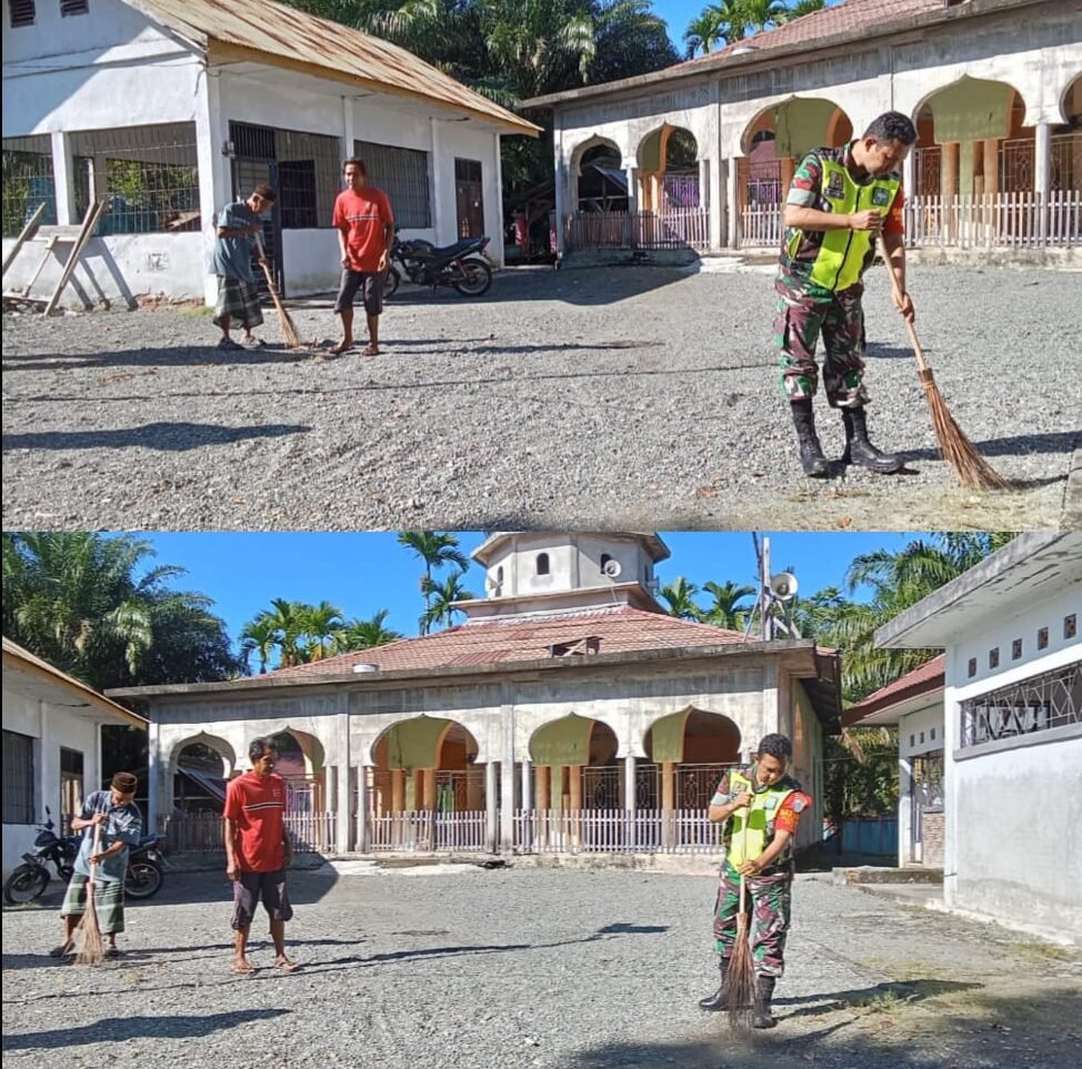 ACEH BARAT – Dalam rangka menyambut datangnya bulan suci Ramadhan, Babinsa Posramil 05/Pante Ceureumen Kodim 0105/Aceh Barat, Koptu Azhari, bersama