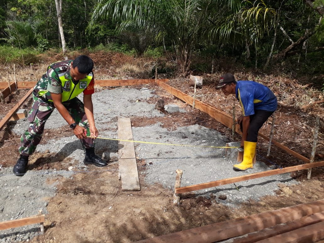 Aceh Barat – Sebagai upaya mengatasi kesulitan sekaligus mewujudkan tempat tinggal yang layak huni, Babinsa Koramil 04/Mrb Kodim 0105/Abar Serma