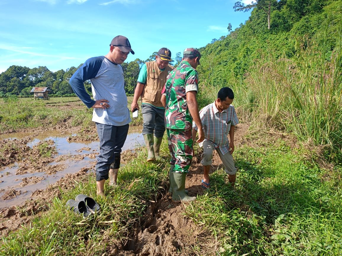 Aceh Jaya – Babinsa Koramil 0114-01/Jaya Koptu Dedi Januari mendampingi petani melaksanakan pengecekan lahan yang akan di bajak di Desa