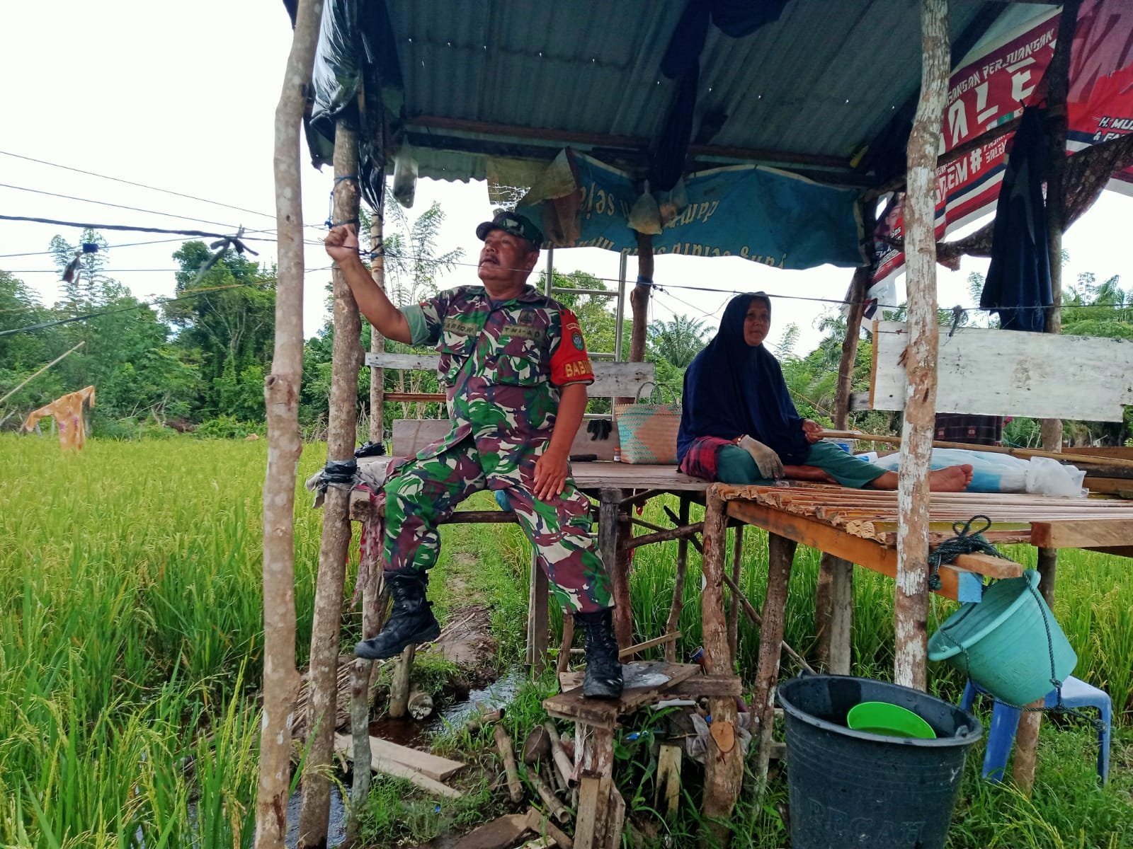 Serda Heru Santoso, Babinsa Koramil 09/Samatiga, Bersama Petani Cek Kondisi Padi di Desa Leubok, Kecamatan Samatiga