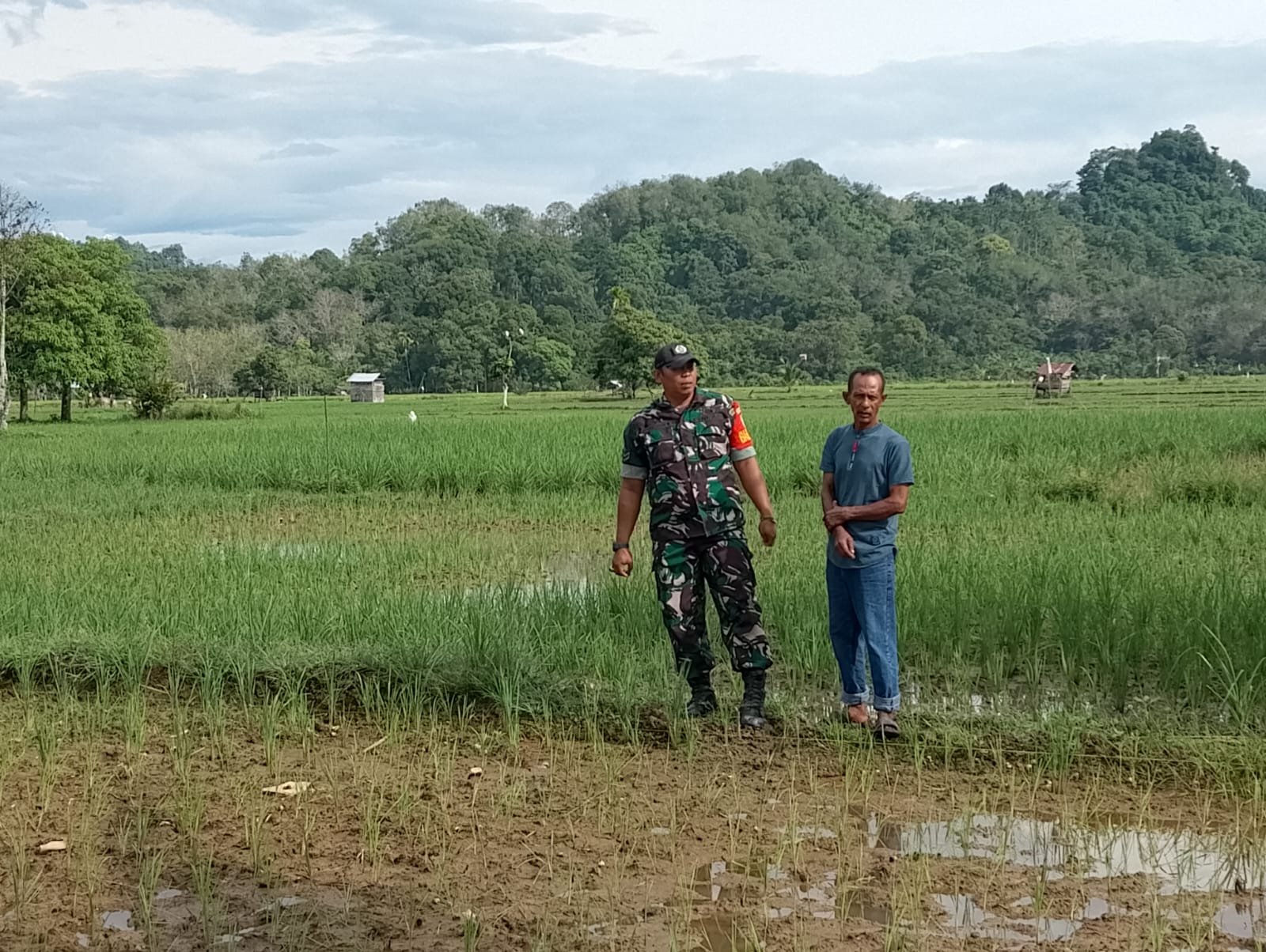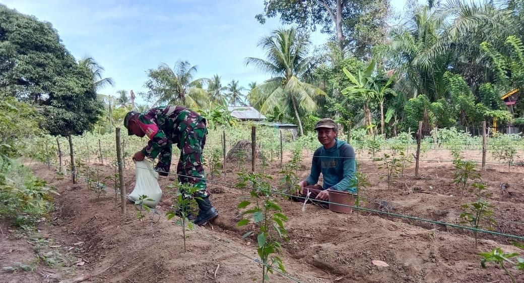 Aceh Barat – Guna memaksimalkan hasil produksi Pertanian, Babinsa Koramil 04/Mrb Kodim 0105/Abar Serma Ngadiso melaksanakan pendampingan sekaligus membantu merawat