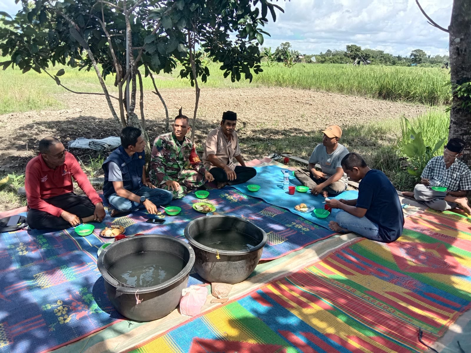 Aceh Jaya – Serka Muhammad Daud Babinsa Koramil 0114-06/Teunom menghadiri undangan para petani di desa binaan dalam acara Kenduri Blang