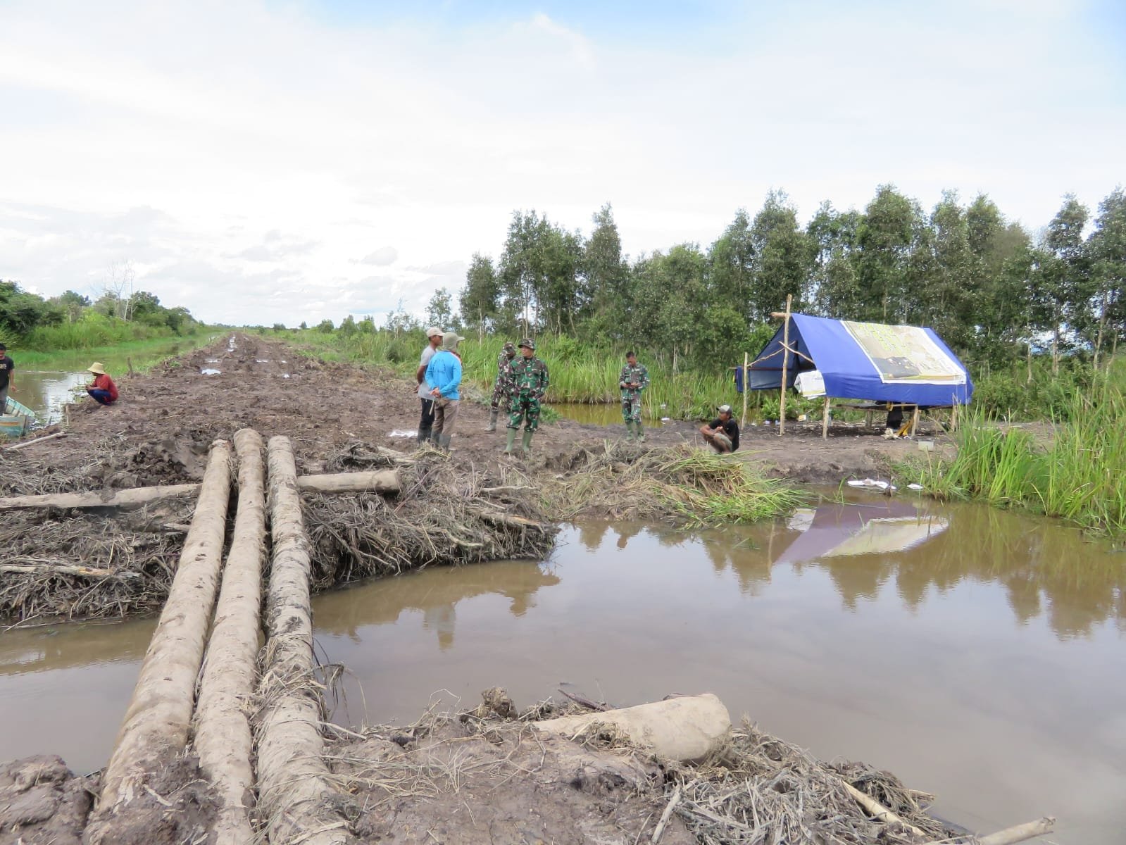 MARTAPURA – Dalam upaya menjaga kebersihan lingkungan serta mencegah banjir dan wabah penyakit, petugas gabungan dari Koramil 1006-04/Gambut, Dinas Lingkungan