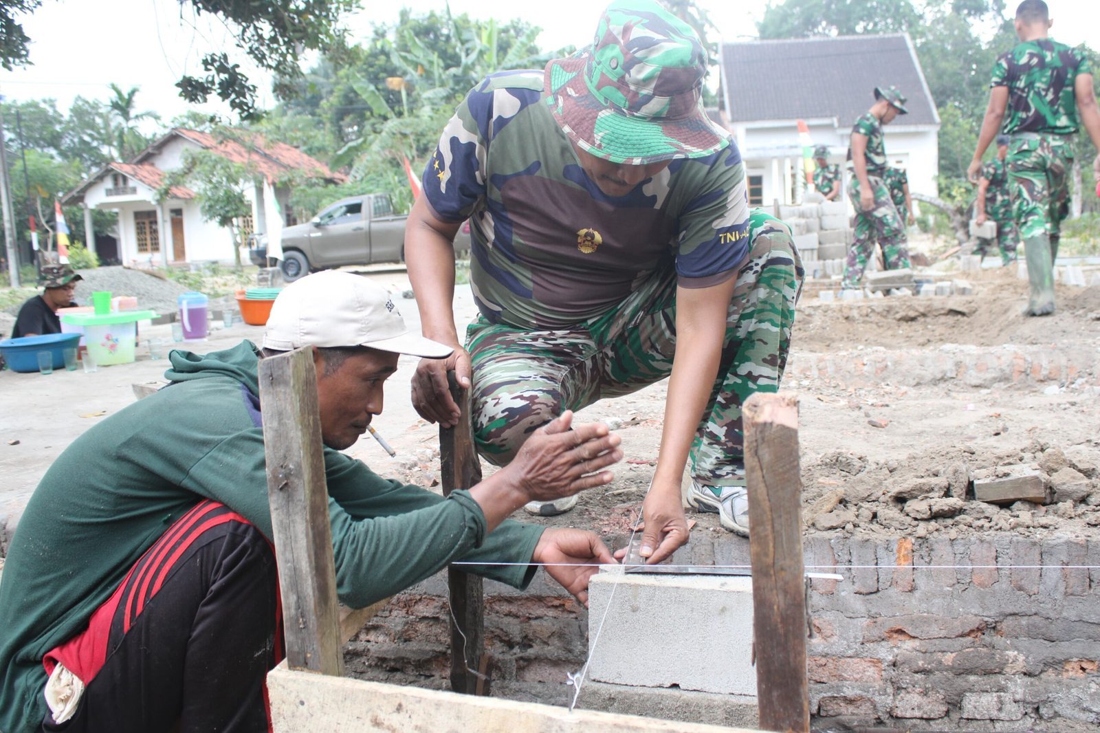 Moris Jaya, Banjar Agung — Progres pembangunan Rumah Tidak Layak Huni (RTLH) pada Sasaran 1 dalam program TNI Manunggal Membangun Desa (TMMD) ke-125 Kodim 0426/Tulang Bawang terus berlangsung. Pada 28 Juli 2025, Satgas TMMD bersama warga Kampung Moris Jaya, Kecamatan Banjar Agung, melaksanakan pemasangan benang dan penggalian untuk pondasi rumah.