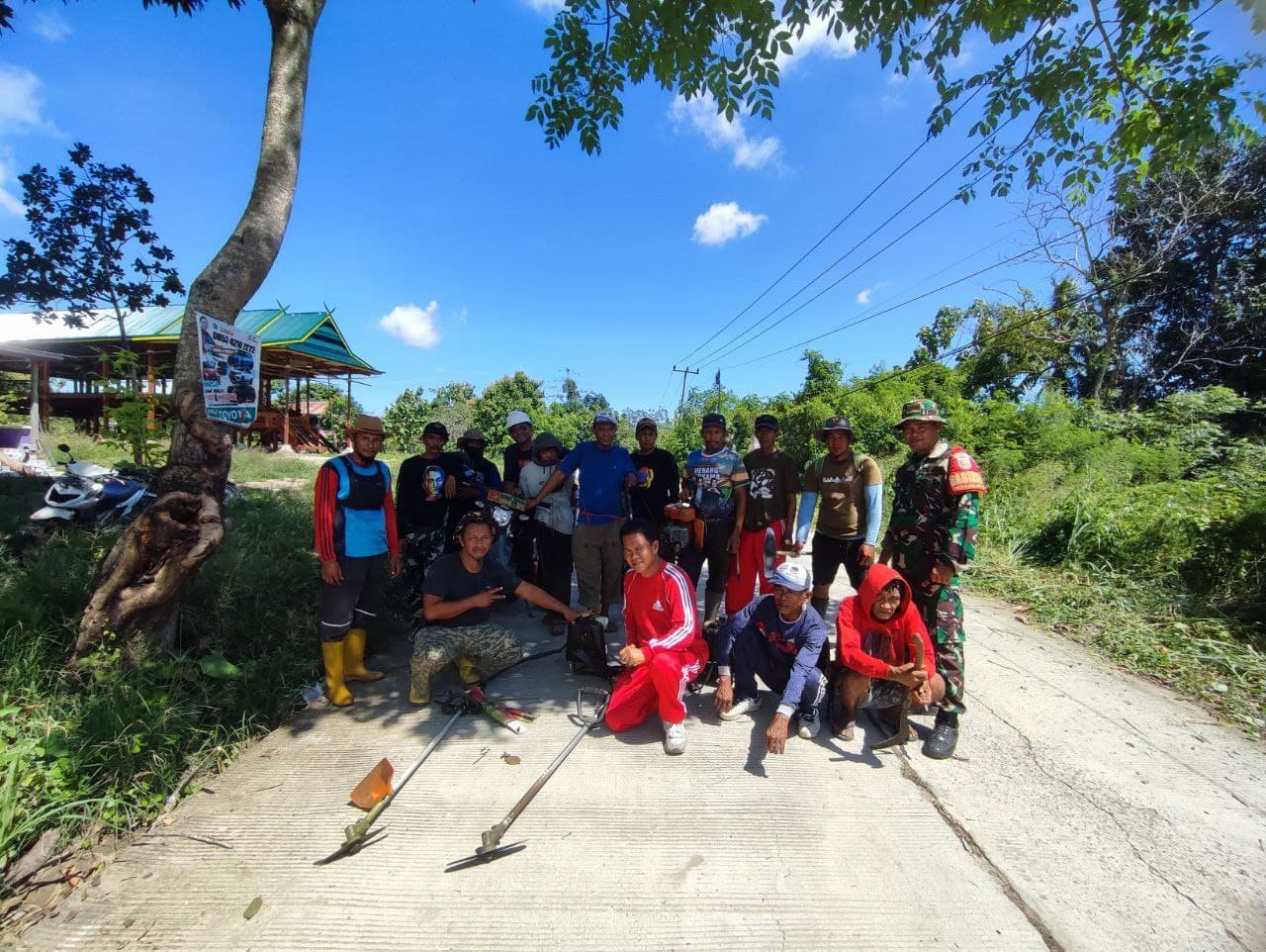 SIDRAP-Babinsa Koramil 1420- 03/Maritengngae Serda Herman Amal bersama warga binaan bergotong royong melaksanakan pembersihan ruas kanan kiri jalan di Desa Mojong Kec.Watsid Kab.Sidenreng Rappang, Minggu (29/12/2024).