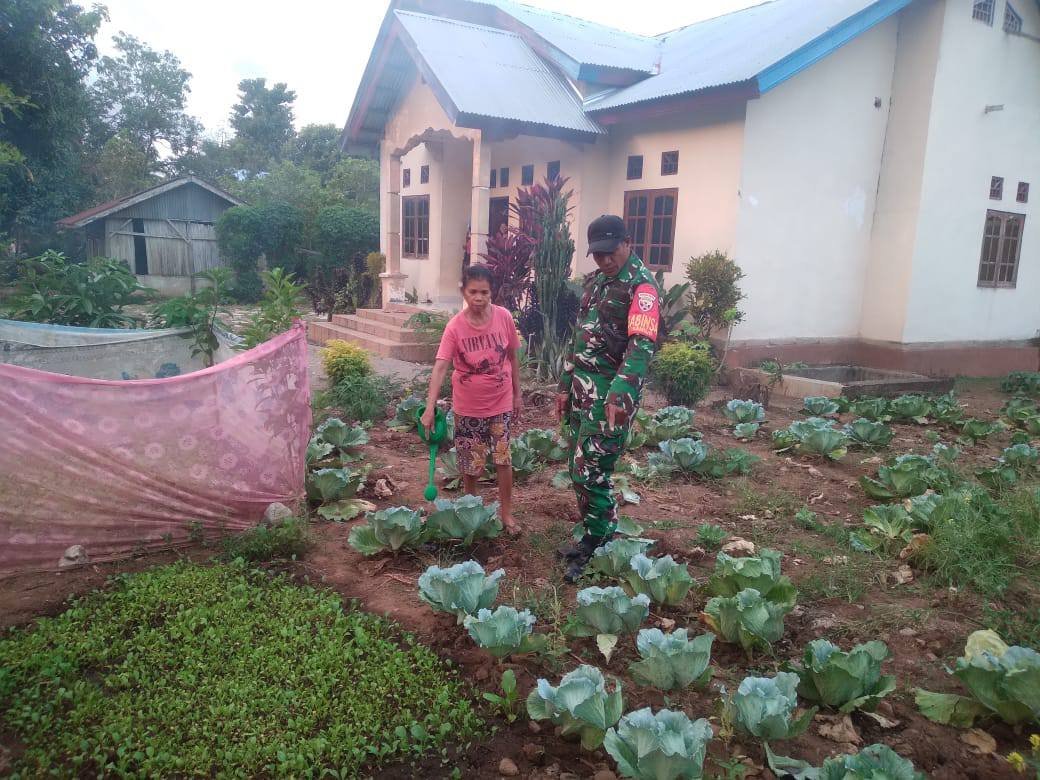 Babinsa Sertu Livio Pinto mengatakan memanfaatkan lahan pekarangan rumah untuk menanam sayur mayur ini merupakan salah satu upaya ikut menjaga ketahanan pangan keluarga.