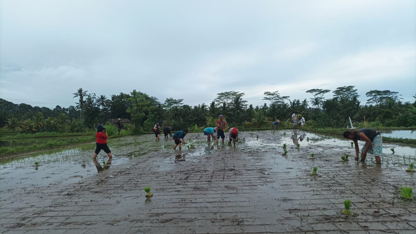 Bangli – Dalam rangka mendukung ketahanan pangan di daerah binaan, Babinsa Desa Apuan, Koramil 1626-02/Susut, Kodim 1626/Bangli, Serka Ketut Rediada melaksanakan pendampingan kepada para petani dalam penanaman padi varietas Inpari 32. Kegiatan ini berlangsung pada Selasa, 7 April 2026, di lahan persawahan Subak Apuan Kaja, Desa Apuan, Kecamatan Susut, Kabupaten Bangli.
