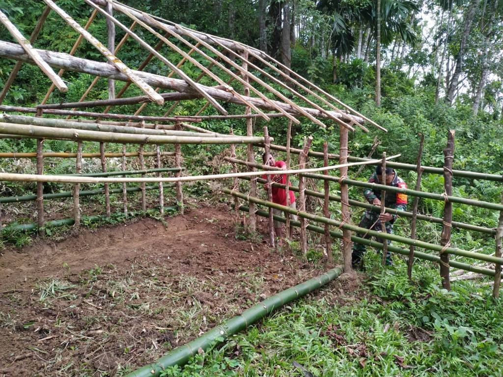 Babinsa Bantu Warga Buat Kandang Hewan Ternak