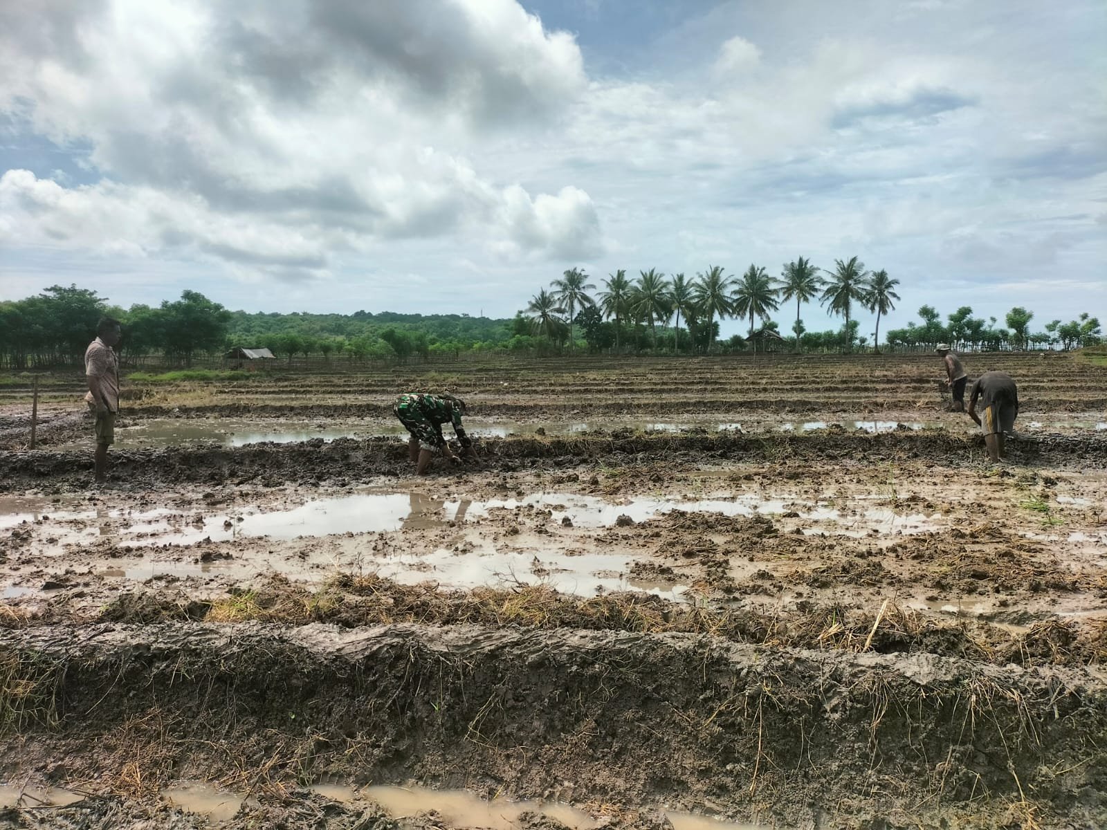 NTT Rote Ndao – Dengan penuh rasa semangat Babinsa juga menumbuhkan semangat tinggi terhadap para petani dalam membantu petani tanam padi, bukan hanya saat tanam padi saja tetapi juga di saat penyemaian bibit padi, pengolahan lahan sawah, perawatan sampai panen padi. Seperti saat ini yang sedang mereka lakukan ialah menanam padi di sawah, sebagai wujud rasa kepedulian terhadap petani.