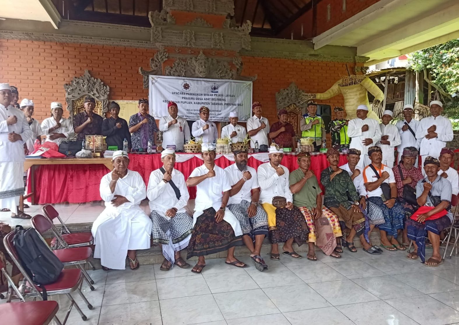 Tabanan – Dalam rangka mendukung pelestarian adat dan budaya serta memperkuat struktur kelembagaan desa adat, Babinsa dari Desa Belimbing, Koramil 1619-03/Pupuan Sertu I Ketut Dadi, turut menghadiri acara Pengukuhan dan Mejaya-Jaya Bendesa Adat beserta Prajuru Desa Adat Belimbing. Acara tersebut berlangsung di pura Puseh Desa Belimbing, Kecamatan Pupuan pada Selasa, 17 Februari 2026.