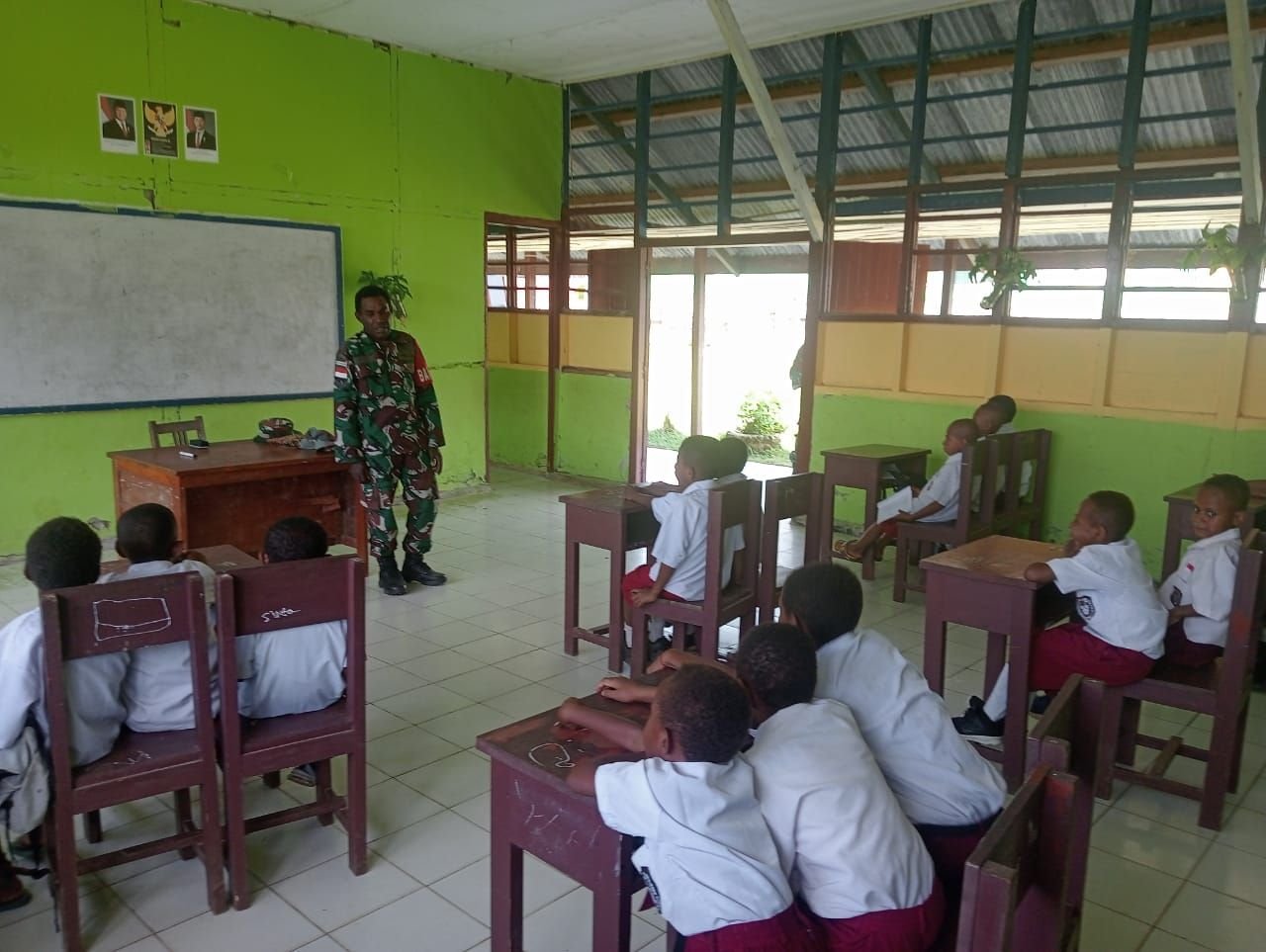 Babinsa Boven Digoel Tanamkan Nilai Pancasila di SD Inpres Xaverius Mindiptana