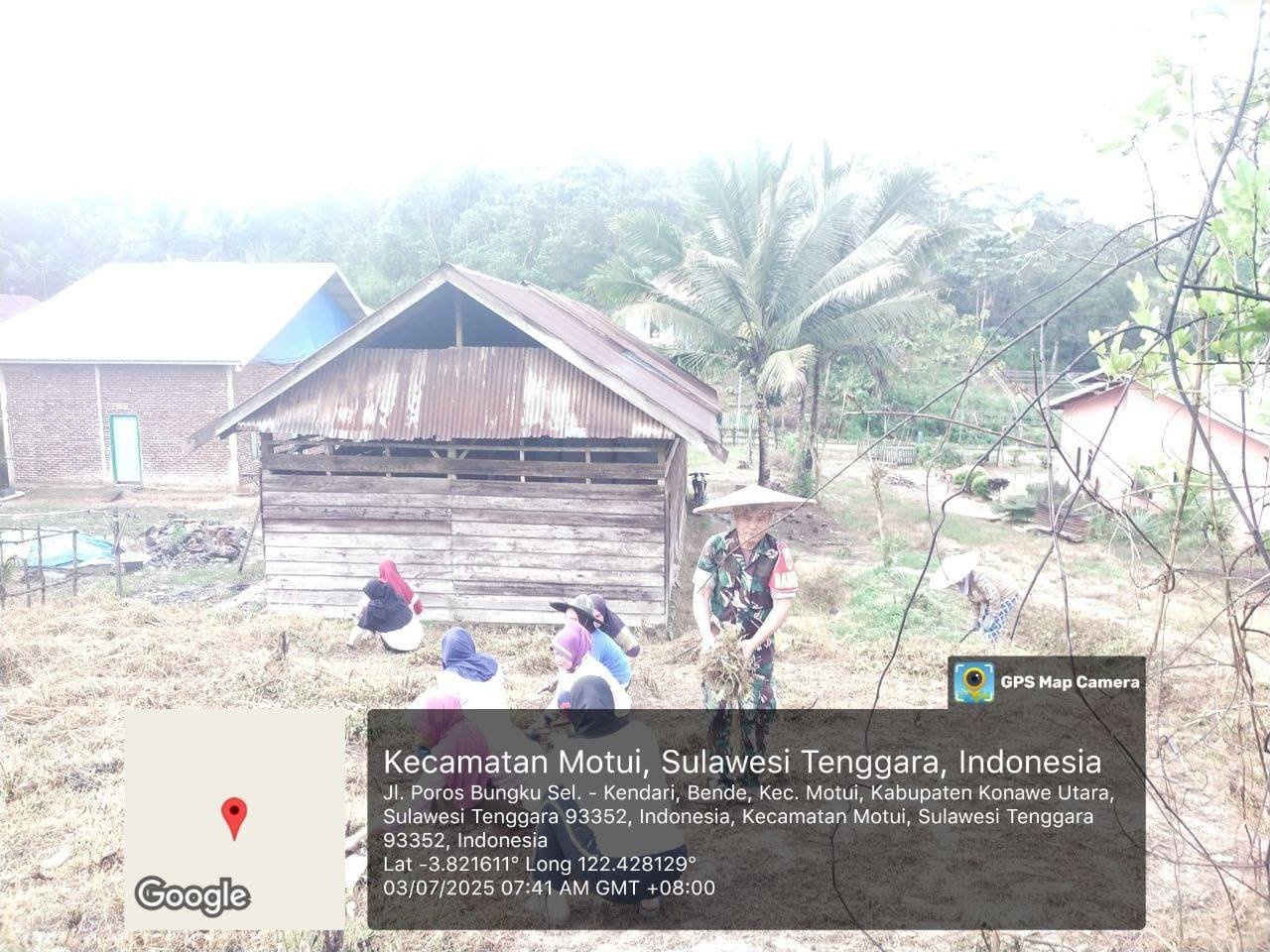 KONUT – Dalam rangka penguatan teritorial dan pembinaan pemberdayan wilayah pertahanan Konawe Utara, Kodim 1430/Konut dalam Wujud nyata kepedulian TNI terhadap ketahanan pangan kembali ditunjukkan oleh Serka Muh Aldin Afrilla, Babinsa Koramil 1430-01/Lasolo, yang melaksanakan kegiatan pendampingan bersama Kelompok Wanita Tani (KWT) “Mepokoaso” di Desa Samba Sule, Kecamatan Motui, Kabupaten Konawe Utara, Rabu (03/7/2025) pagi.