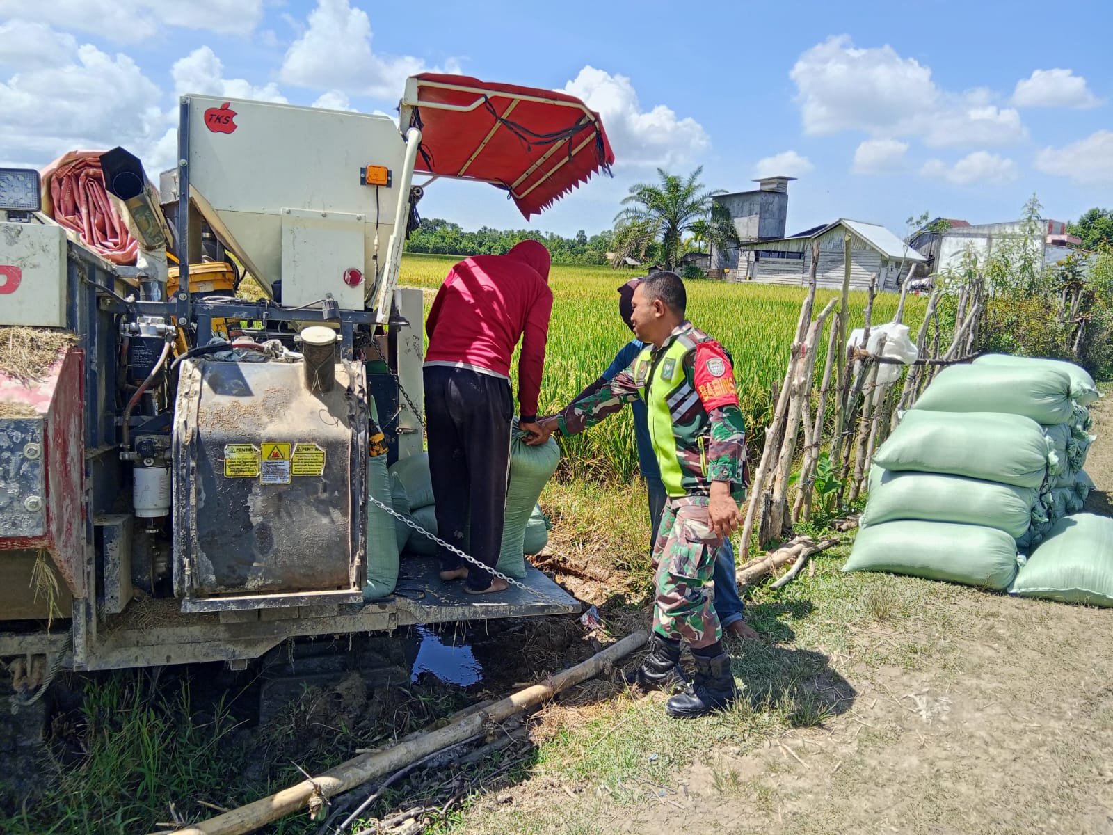 ACEH BARAT – Babinsa Posramil 06/Bubon Kodim 0105/Aceh Barat, Sertu Endi Suhendi, melaksanakan pendampingan panen padi menggunakan mesin modern berupa alat pemanen padi Combine Harvester di lahan milik Kelompok Tani Karya Mupakat seluas 10 hektare, yang terletak di Desa Liceh, Kecamatan Bubon, Kabupaten Aceh Barat, Minggu (28/09/2025).
