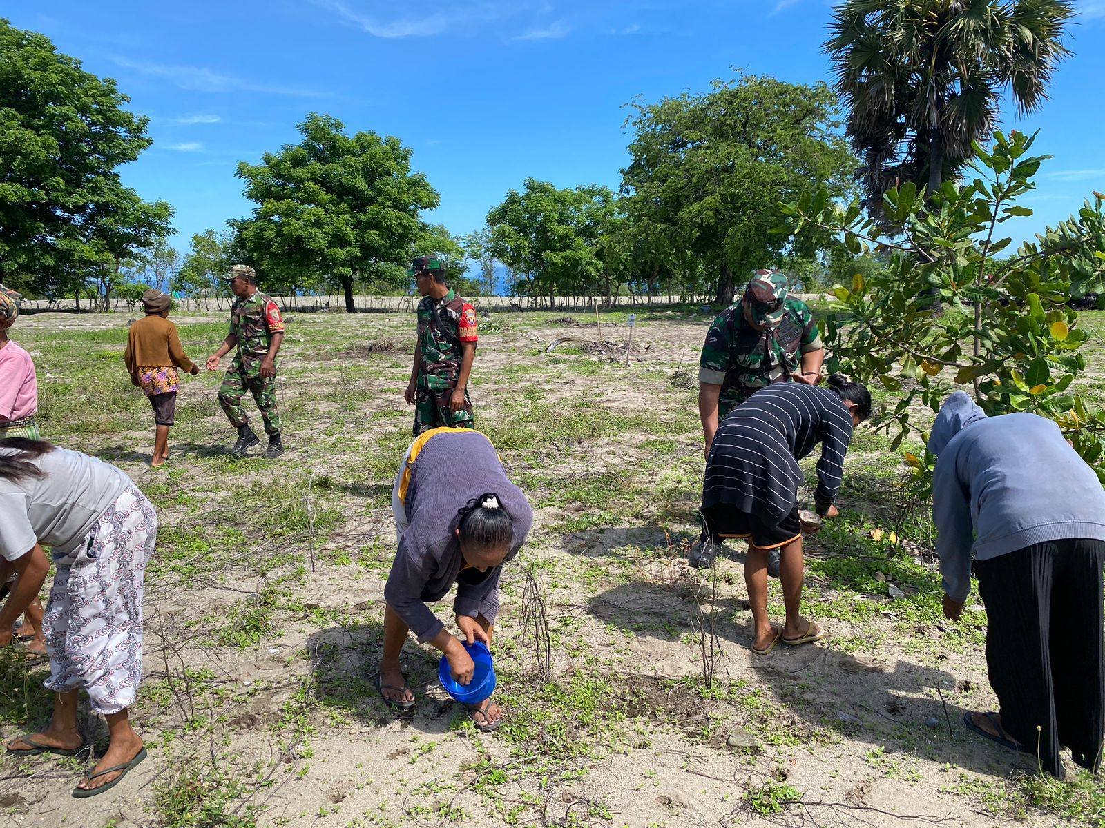 Babinsa Sertu Denis mengatakan penanaman kacang hijau yang dilakukan di lahan Pastor Paroki Santo Yohanes Paulus II Ropa ini.