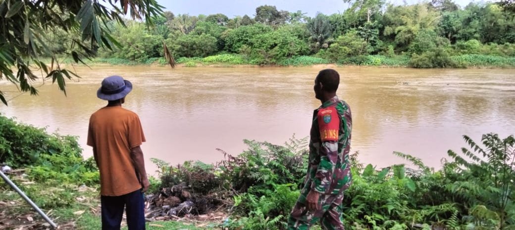Babinsa dan Warga Pantau Debit Air Sungai untuk Antisipasi Banjir