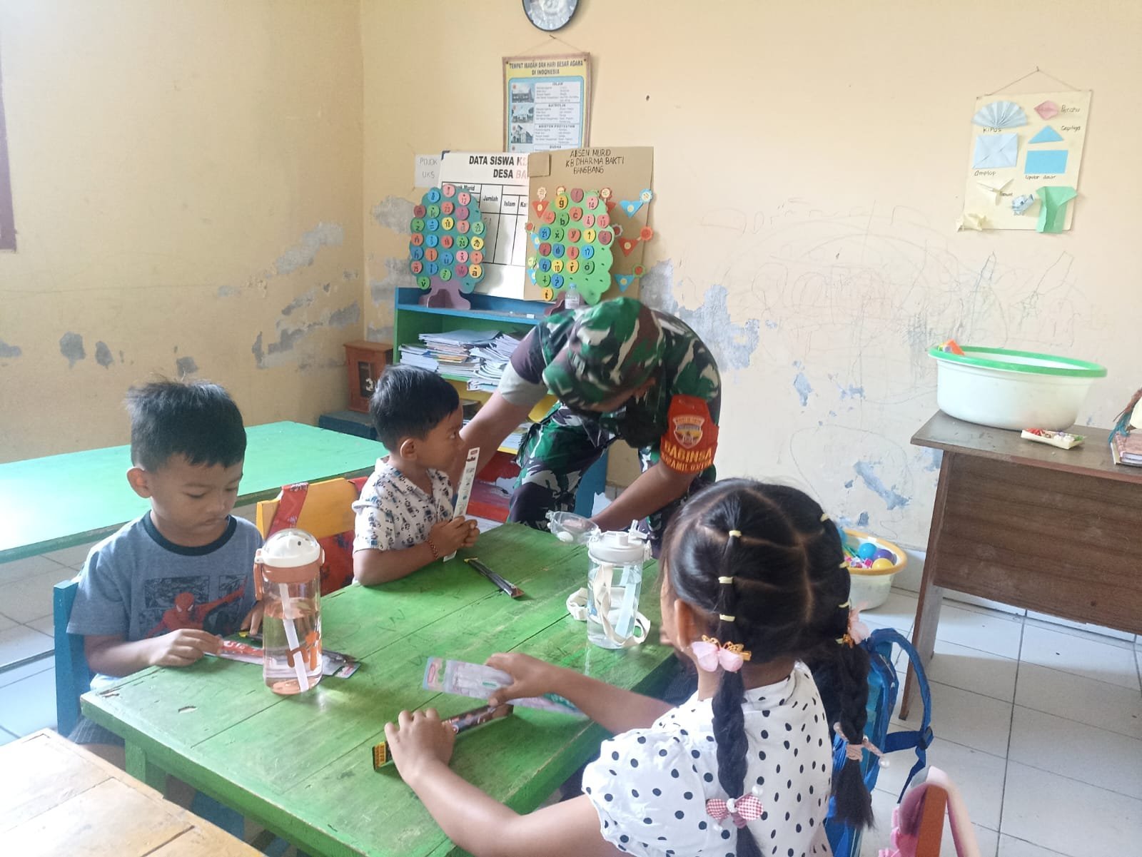 Babinsa Desa Bangbang Aktif Dampingi Kegiatan Kesehatan Mahasiswa KKN Unud di Paud Darma Bakti