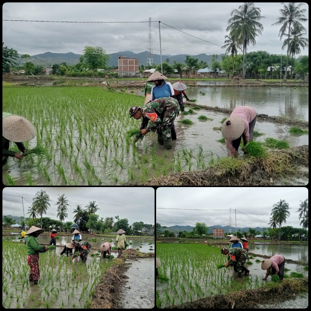 NTB -Dompu,Sertu Mastudinur Babinsa Desa Malaju Koramil 04/Kilo turun ke sawah membantu penanaman padi poktan So Ala Dusun Paropa Timur Desa Malaju Kecamatan Kilo Kabupaten Dompu, Kamis (16/01/2025)