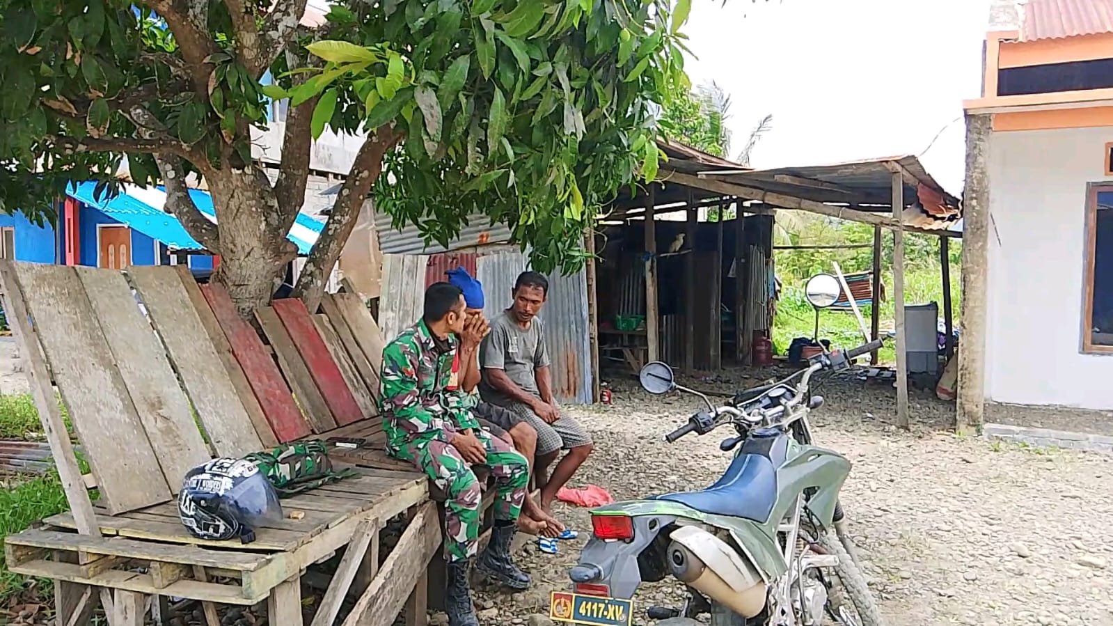 Halmahera Tengah – Kopda Idrus Wally dari Koramil 1512-01/Weda bersama dengan Bapak Jafar dan Bapak Aswin melaksanakan kegiatan komunikasi sosial (komsos) di Desa Messa, Kecamatan Weda Timur, Kabupaten Halmahera Tengah pada Rabu, 11 Maret 2026. Dalam kesempatan tersebut, ia mengimbau masyarakat agar selalu menjaga keamanan dan ketertiban lingkungan di sekitar mereka.