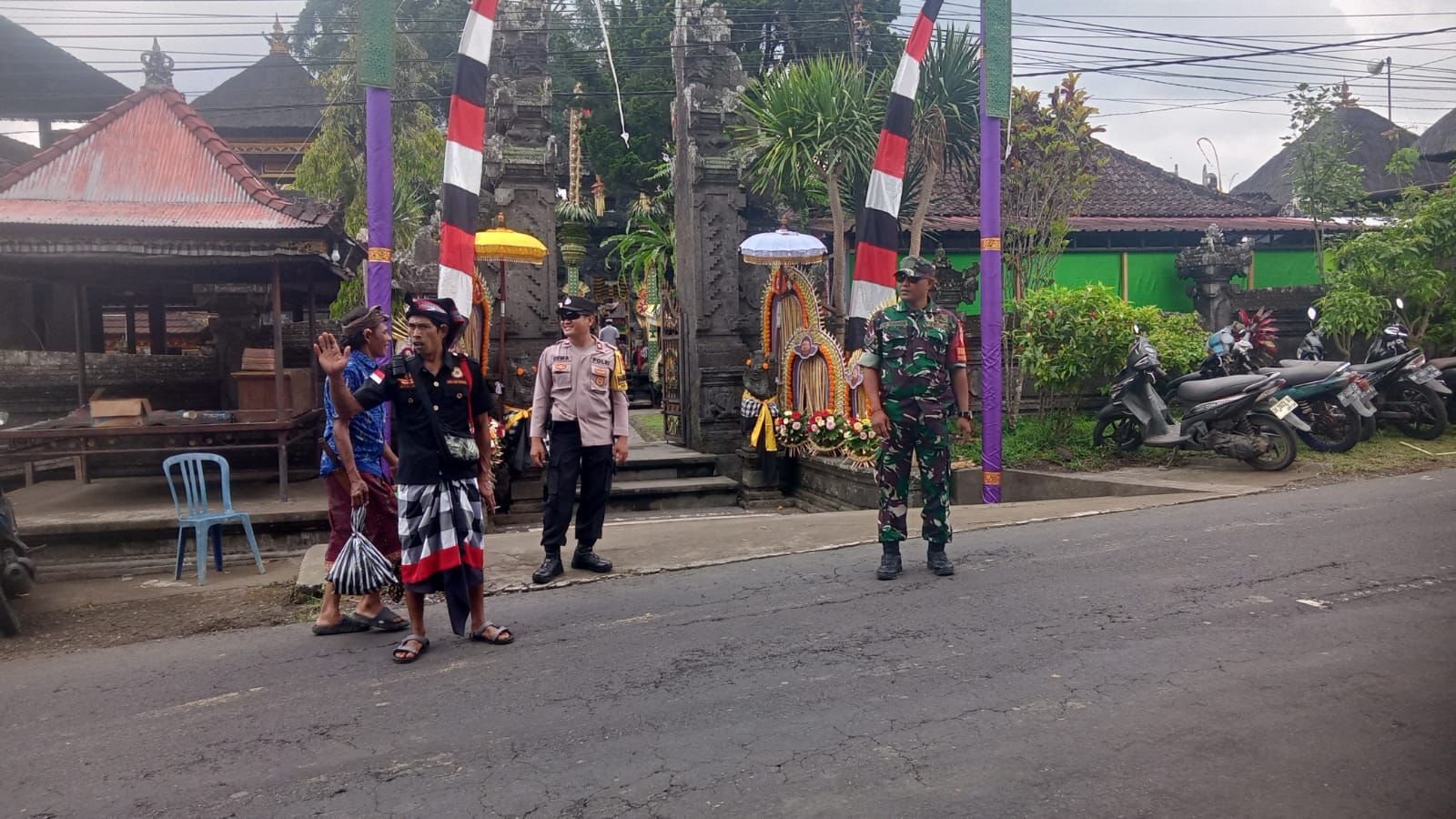 Babinsa Desa Pengotan Bersinergi dengan Aparat Terkait Amankan Upacara Piodalan di Pura Puseh Bale Agung